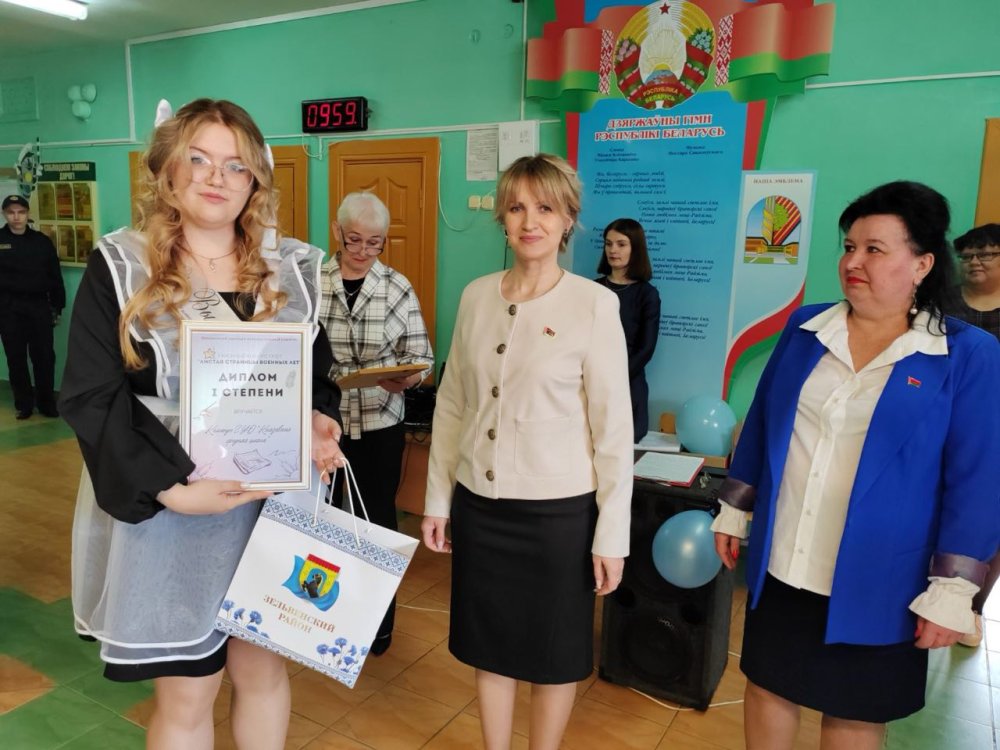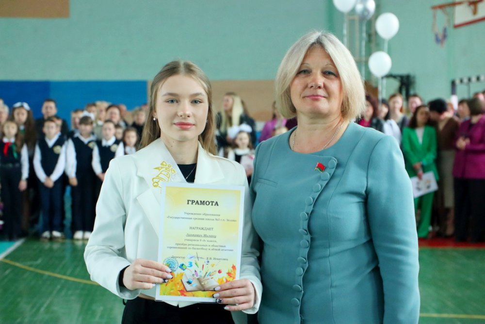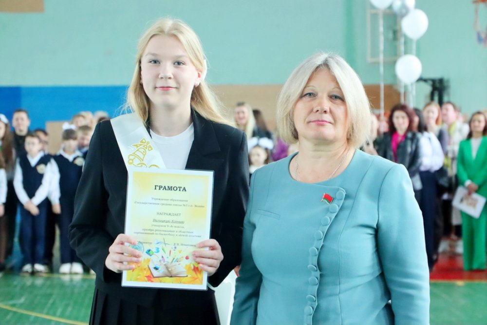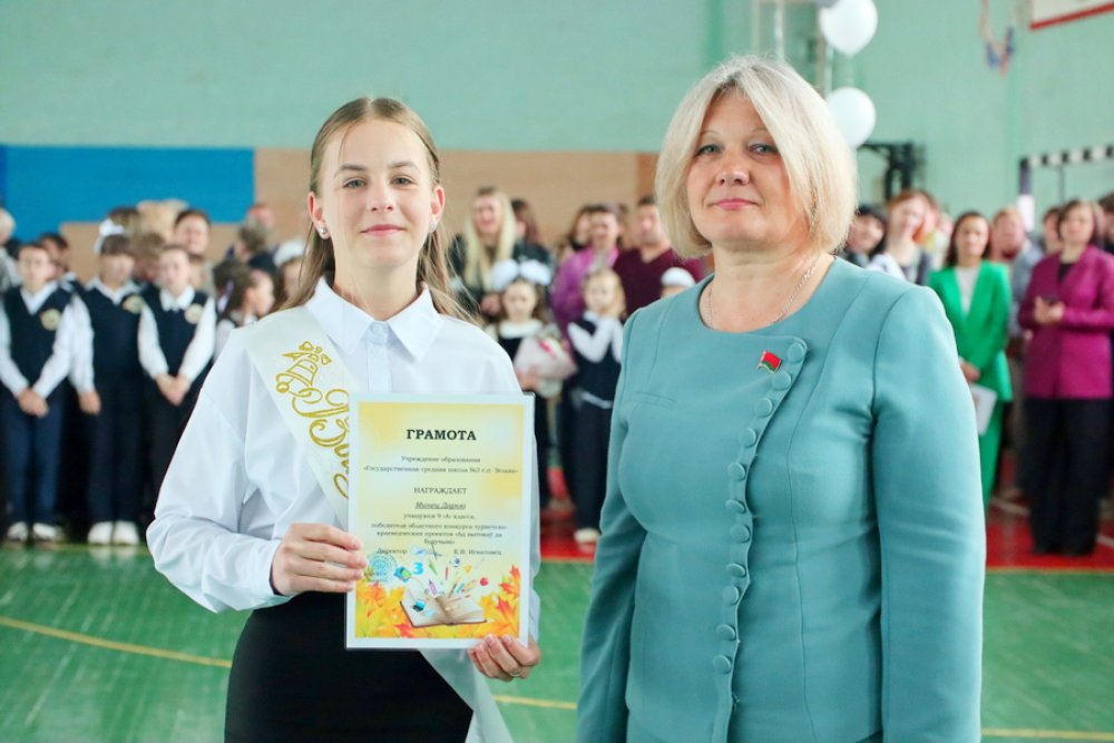 Открыла праздник директор школы Нина Самойлова, которая поблагодарила учеников за желание учиться, достигать поставленных целей, а результатом их труда стало первое место учреждения образования среди школ Зельвенского района: «Всё у вас получится, потому что вы живете в мирной и процветающей стране! В добрый путь».