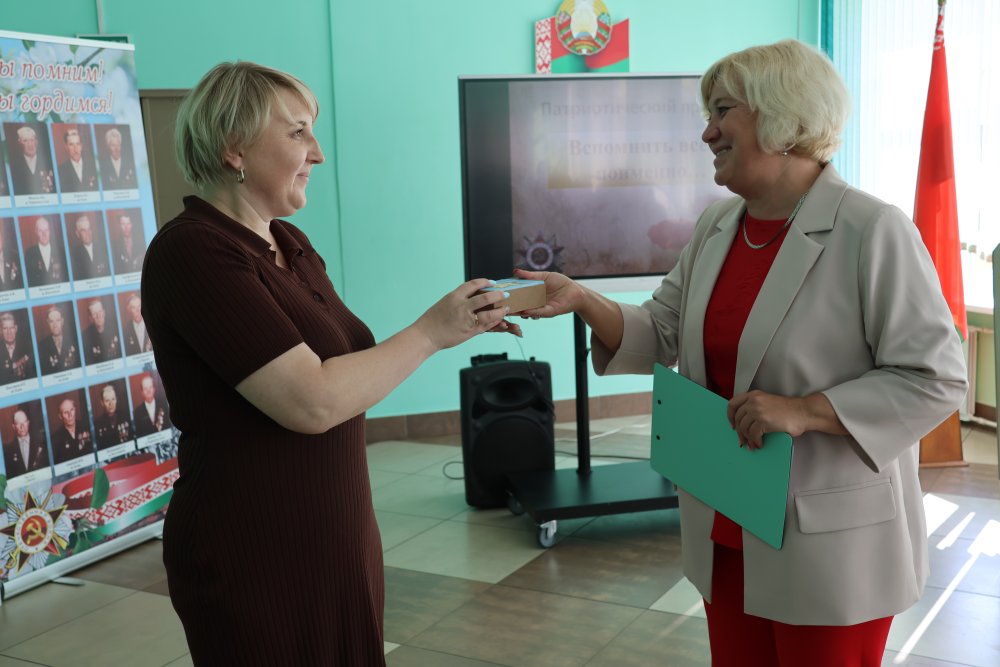 Татьяна Петровна передала флешку с имеющейся информацией учеников начальнику отдела идеологической работы и по делам молодежи Инне Талерчик для пополнения и дальнейшей оцифровки с целью создания виртуального музея.
