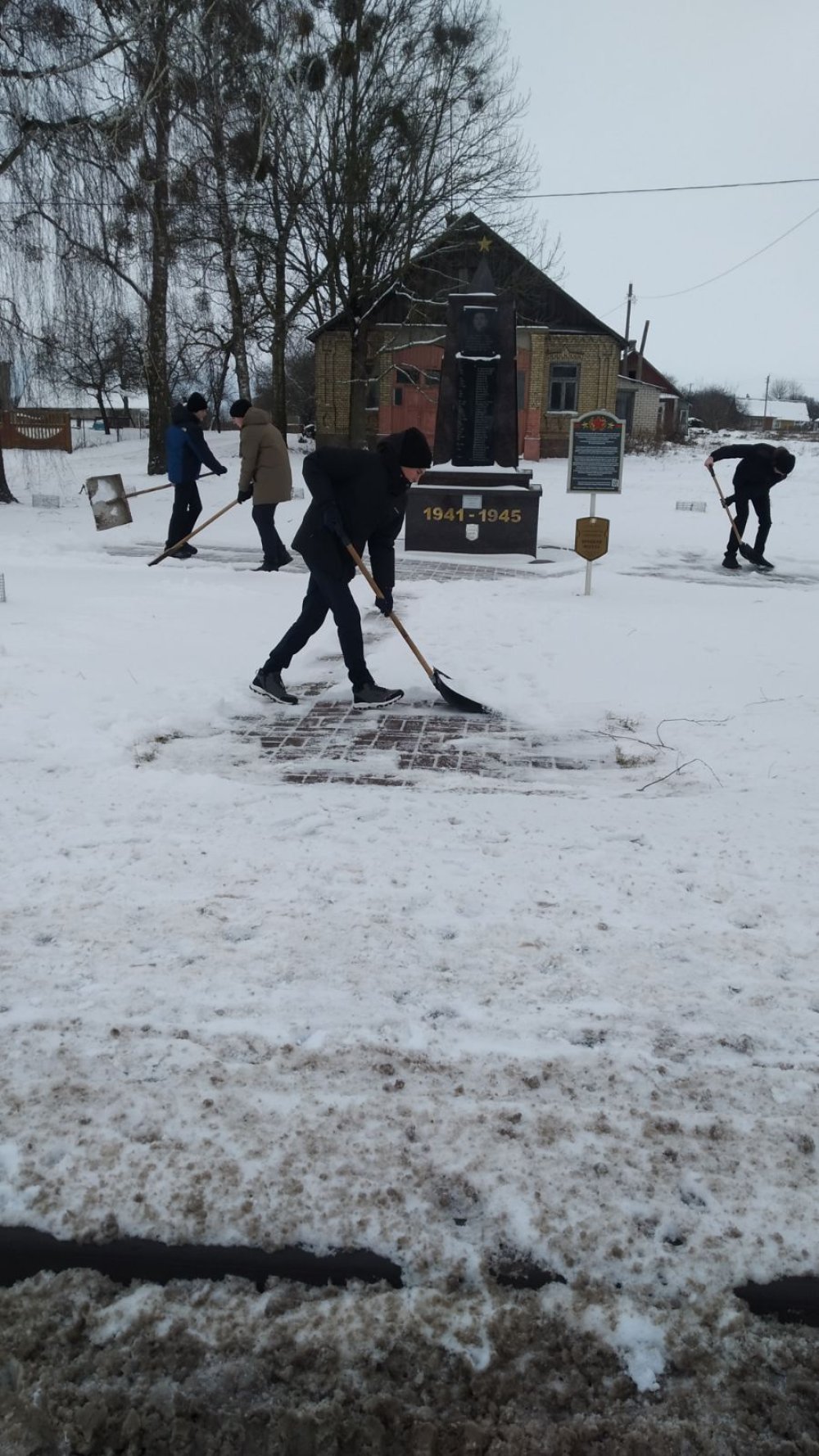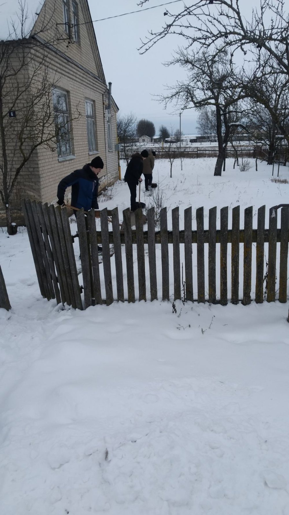 Отряды Князевской средней школы и Деречинской СШ имени Г.Л. Кириллова первыми вышли на помощь односельчанам, кто не в силах справиться со стихией. Сменив учебники и тетради на лопаты, ребята расчищают снег с дорожек, ступенек и площадок одиноко проживающих людей, а также возле памятников.