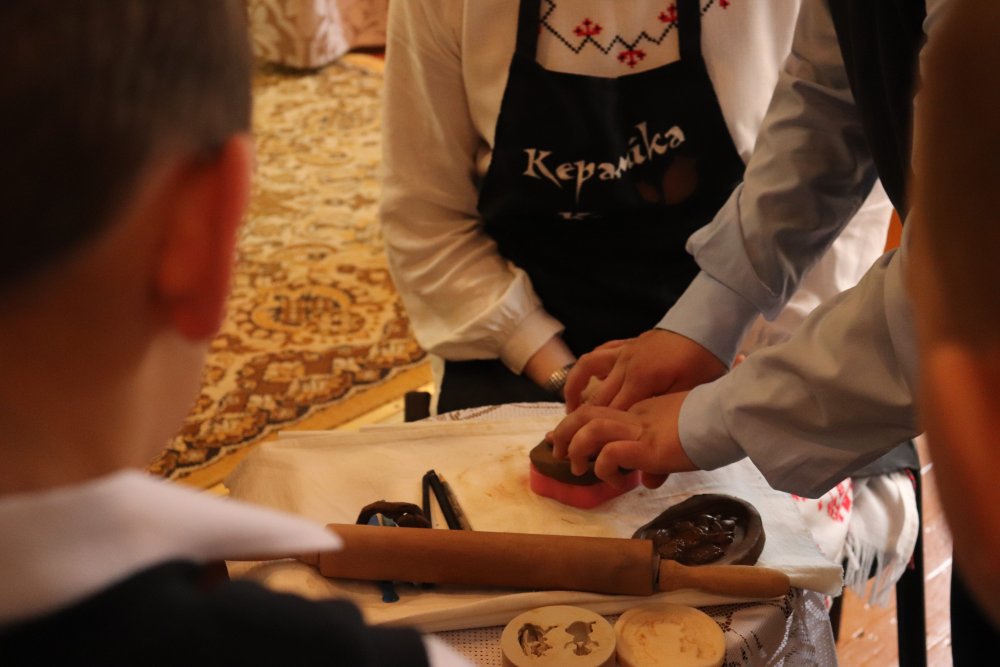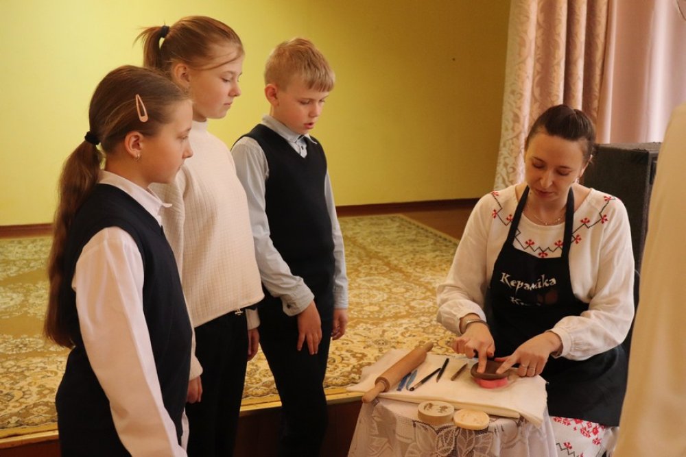 В завершение мероприятия состоялся мастер-класс по изготовлению керамических изделий от мастера отдела ремесел и традиционной культуры районного центра культуры и народного творчества Ирины Деречиник, который произвел неизгладимое впечатление на всех присутствующих. Ученики имели возможность попробовать себя в этом ремесле.