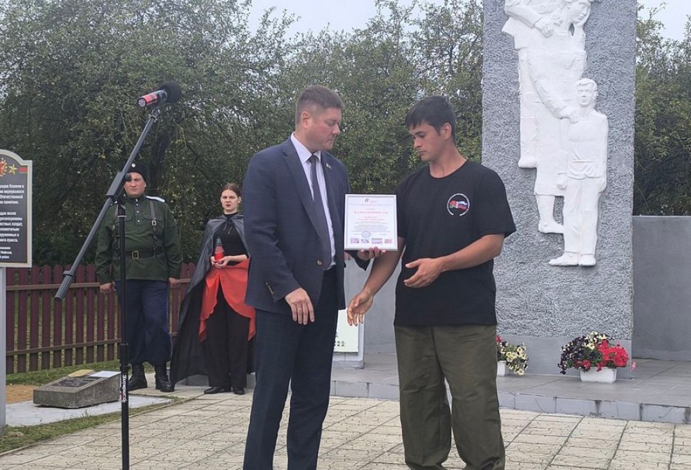 Были вручены благодарности Зельвенского районного отделения Гродненской области Белорусской партии «Белая Русь» за личный вклад в сохранение исторической памяти и сбережение военно-исторического наследия самым активным поисковикам Союзного государства: Эльмире Касимовой (п/отряд «Гвардия», г. Заинск Республики Татарстан), Дмитрию Денисову (п/отряд «Кадет», г. Набережные Челны Республики Татарстан), Виталию Кульпо («Батьковщина», г. Минск).