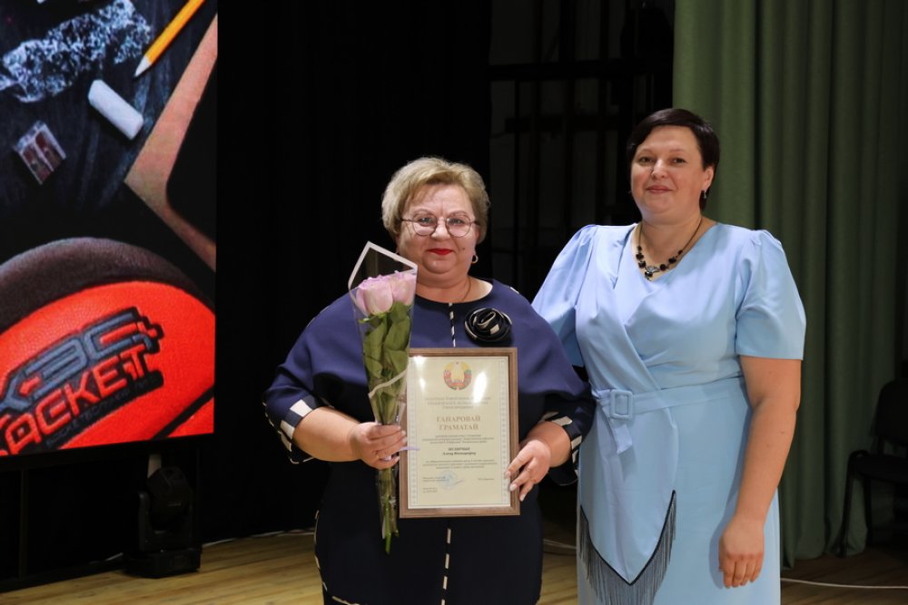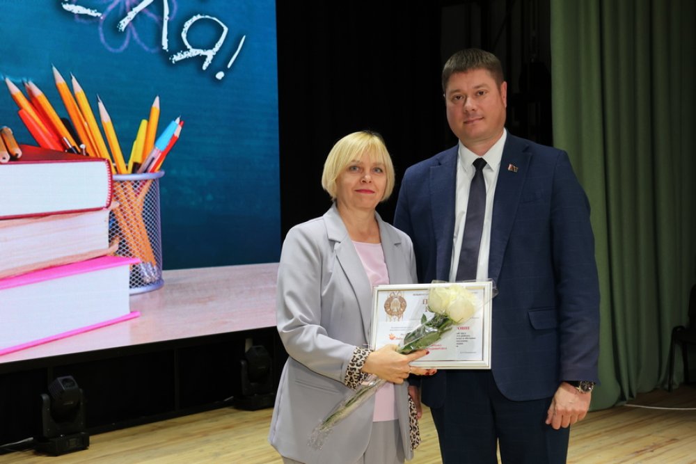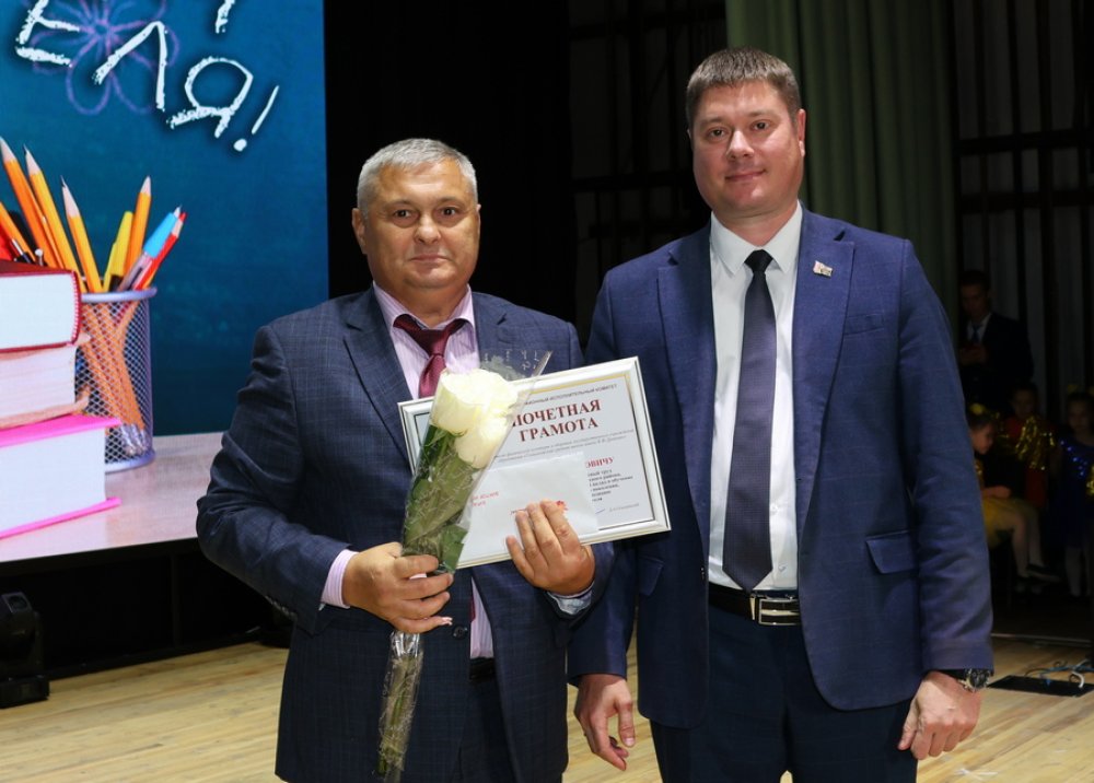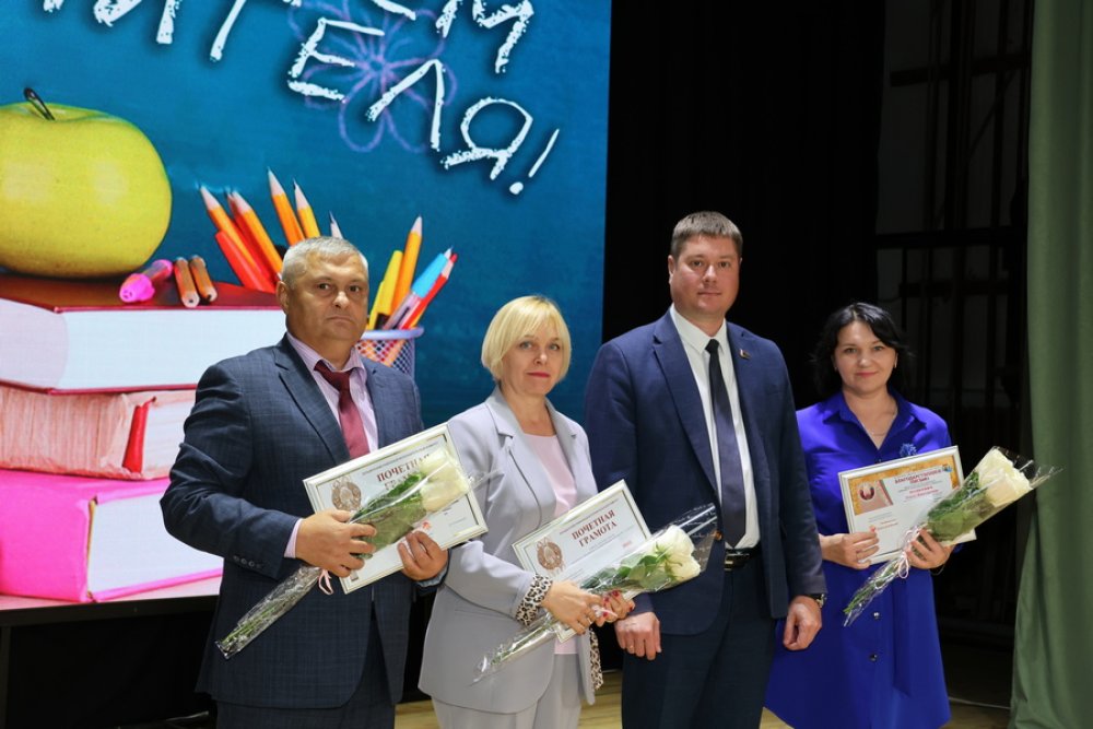 Поздравил присутствующих Глава района Денис Ольшевский, который за добросовестный труд и достигнутые успехи в воспитании и обучении подрастающего поколения наградил Почетной грамотой Зельвенского районного исполнительного комитета учителя начальных классов гимназии №1 Гончаренко Елену Владимировну, учителя физической культуры и здоровья Голынковской средней школы имени Владимира Фёдоровича Дравицы Бурака Виктора Ивановича.