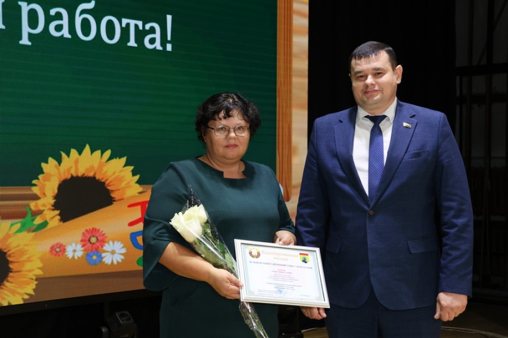 Благодарственное письмо председателя районного Совета депутатов из рук Вадима Панасика получила заместитель директора по учебно-воспитательной работе Князевской средней школы Наруш Ольга Николаевна.