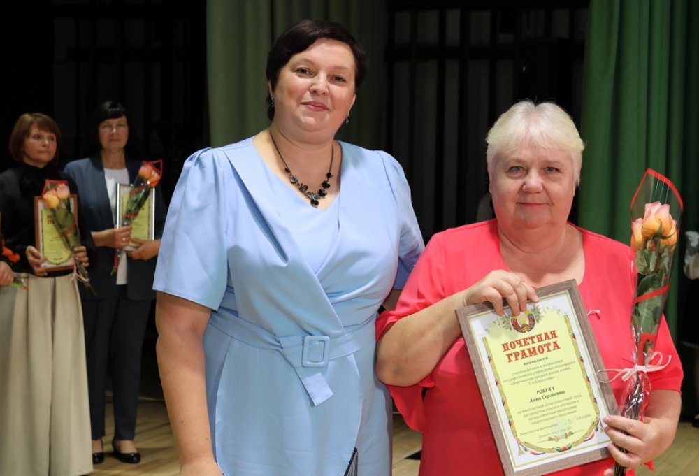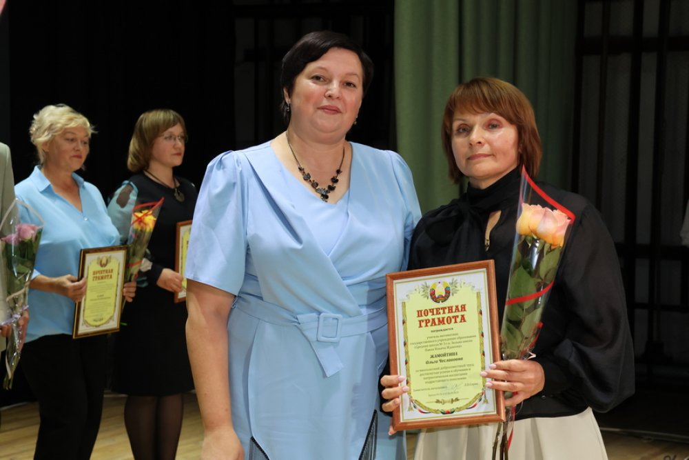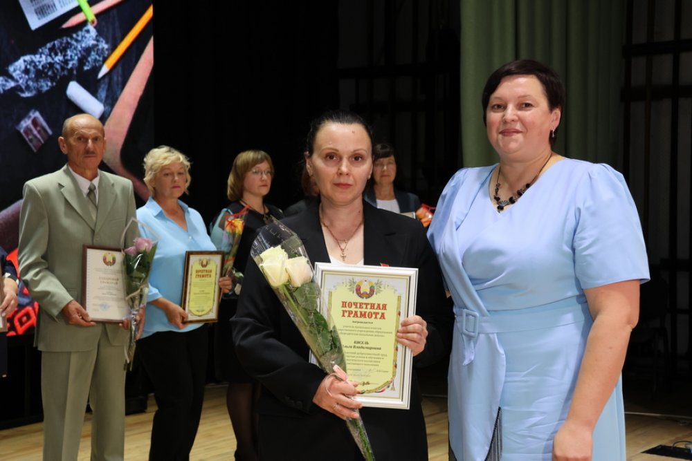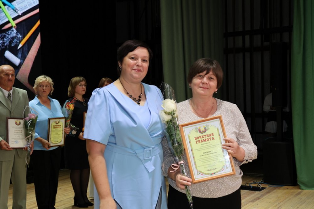 Почётной грамотой отдела образования отмечены учитель математики средней школы № 3 городского посёлка Зельва имени Павла Ильича Жданова Жамойтина Ольга Чеславовна, воспитатель дошкольного центра развития ребёнка №1 Артюх Ольга Борисовна, воспитатели Деречинской средней школы имени Григория Лазаревича Кириллова Будник Татьяна Владимировна, детского сада №4 Ляшевич Татьяна Анатольевна, учитель трудового обучения Голынковской средней школы имени Владимира Фёдоровича Дравицы Кобринец Диана Михайловна, учитель немецкого языка Князевской средней школы Кондак Ирина Фоминична, педагог-психолог Зельвенского районного социально-педагогического центра Радюк Елена Мечиславовна, учитель русского языка и литературы средней школы №3 имени Павла Ильича Жданова Рак Анжелика Михайловна, учитель физики и математики Деречинской средней школы имени Григория Лазаревича Кириллова Ровгач Анна Сергеевна, учитель начальных классов Деречинской средней школы имени Григория Лазаревича Кириллова Санукевич Оксана Викентьевна, учитель-дефектолог Бородичской начальной школы Перскевич Анжелика Викторовна, учитель начальных классов Бородичской начальной школы Кисель Ольга Владимировна.