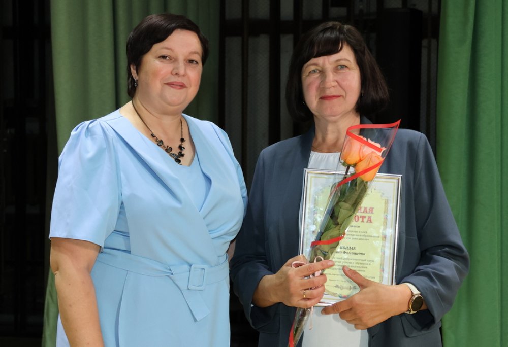 Начальник отдела образования Зельвенского районного исполнительного комитета Светлану Анатольевну Жебрак вручила Почётную грамоту главного управления образования Гродненского областного исполнительного комитета учителю биологии гимназии №1 Войтко Светлане Николаевне, учителю русского языка и литературы Деречинской средней школы имени Григория Лазаревича Кириллова Мулярчик Елене Викторовна, музыкальному руководителю санаторной школы-интерната Стругу Ивану Леонидовичу.
