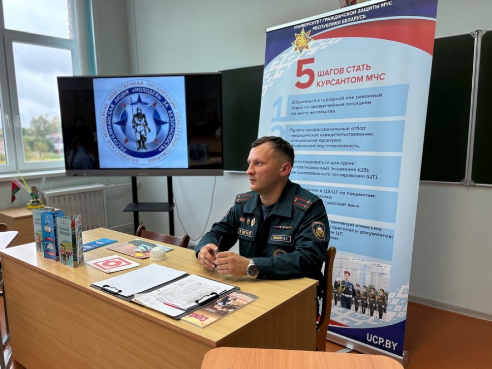 В Голынковской средней школе имени Владимира Дравицы состоялась встреча с работником пожарного ведомства. Учащиеся собрались за круглым столом, чтобы в неформальной обстановке задать вопросы заместителю начальника районного отдела по чрезвычайным ситуациям Александру Панасику. Такой формат общения позволил ребятам узнать о службе в МЧС из первых уст и, возможно, определиться с будущей профессией.