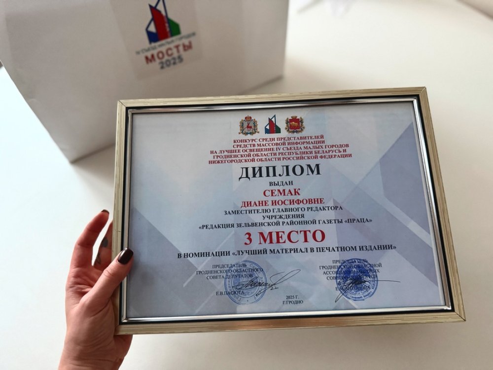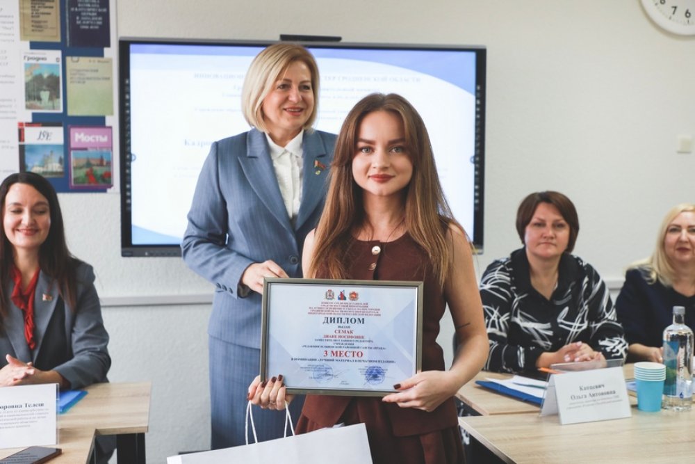 В номинации "Лучший материал в печатном издании" дипломом за 3 место отмечена заместитель главного редактора Зельвенской районной газеты "Праца" Диана Семак.