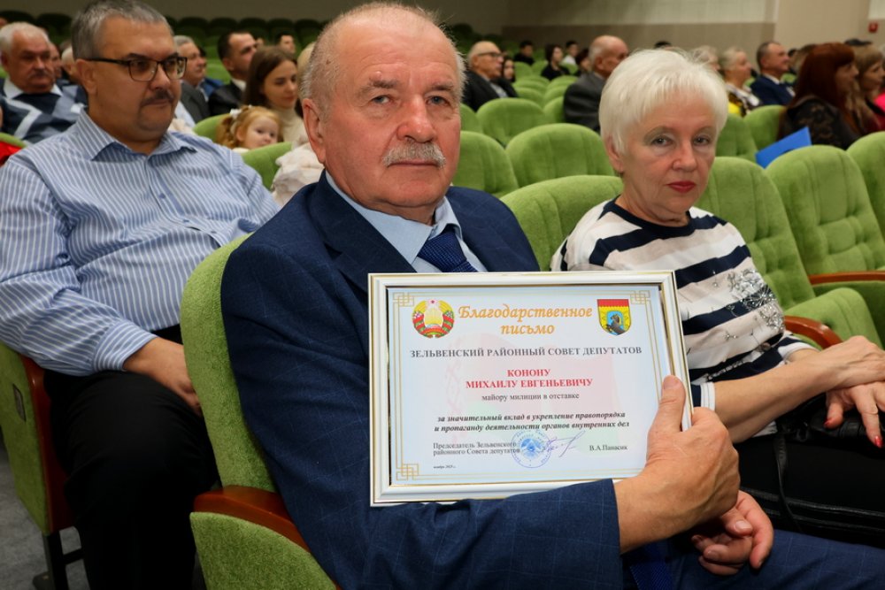 К теплым словам присоединился председатель райсовета Вадим Панасик. Вадим Александрович отметил Благодарственным письмом председателя районного Совета депутатов майора милиции в отставке Михаила Конона и майора милиции в отставке Евгения Михнюка.