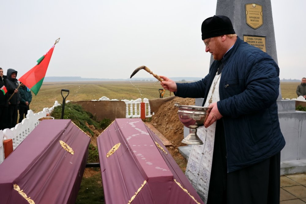 С воинскими почестями и по христианской традиции останки были преданы земле в месте, где покоятся 400 солдат. После этого минуту молчания сменили оружейные залпы и на могилы легли живые цветы.