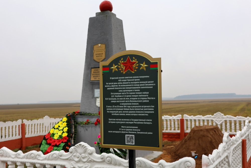 Первая траурная церемония прошла у братской могилы советских воинов в деревне Алексичи Деречинского сельсовета. В митинге памяти приняли участие представители местной власти, военнослужащие, местные жители, родственники погибших солдат из Российской Федерации: племянница красноармейца Костина Татьяна Юровская из Уфы, племянники красноармейца Высокосова – Людмила Овчарова с братом Сергем Высокосовым из Москвы, большая семья младшего политрука Резниченко из Волгоградской области.
