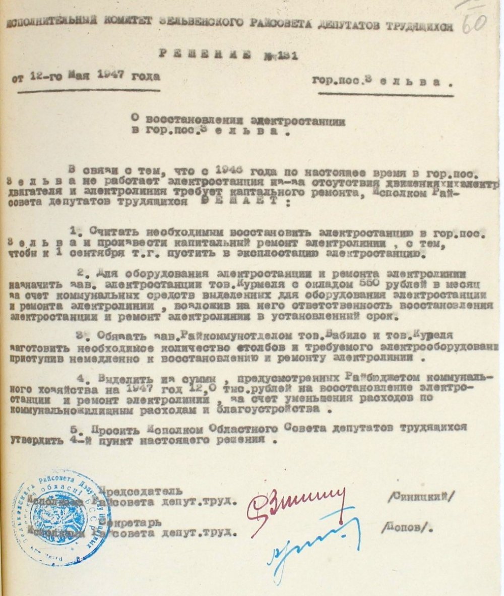 В 1945-1947 годы в Зельве начали свою деятельность маслозавод, колбасный цех, райпромкомбинат. Были восстановлены железнодорожный узел и лесозавод. В 1948 году вступила в строй электростанция, обеспечившая стабильное снабжение электро-