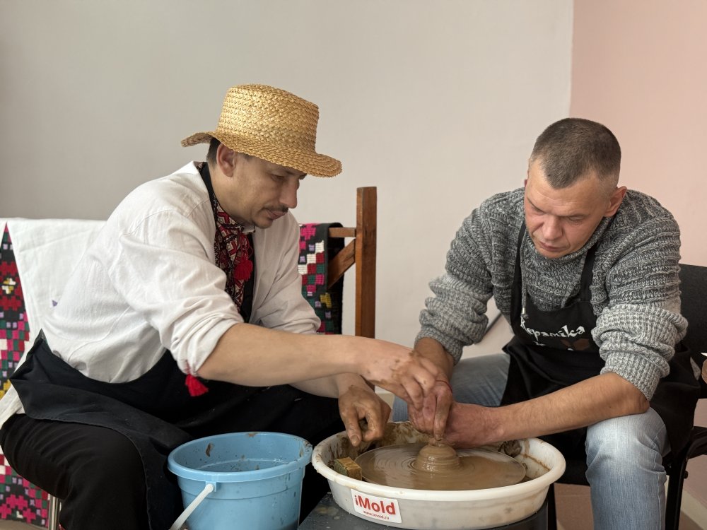 У завяршэнне майстры Аляксандр Ішчанка і Аляксандр Галянда падрыхтавалі для прысутных майстар-класы па вырабу посуду на ганчарным крузе і пляценні кошыкаў з лазы.