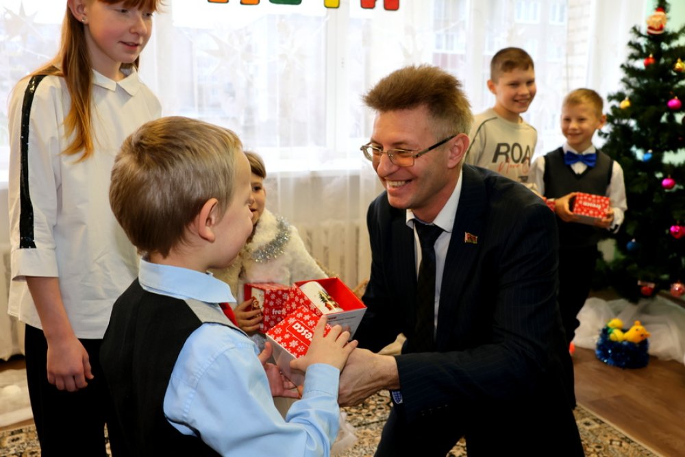Торжественное открытие акции состоялось в стенах СПЦ. На новогоднем утреннике поприветствовал всех собравшихся председатель райисполкома Юрий Костоломов: