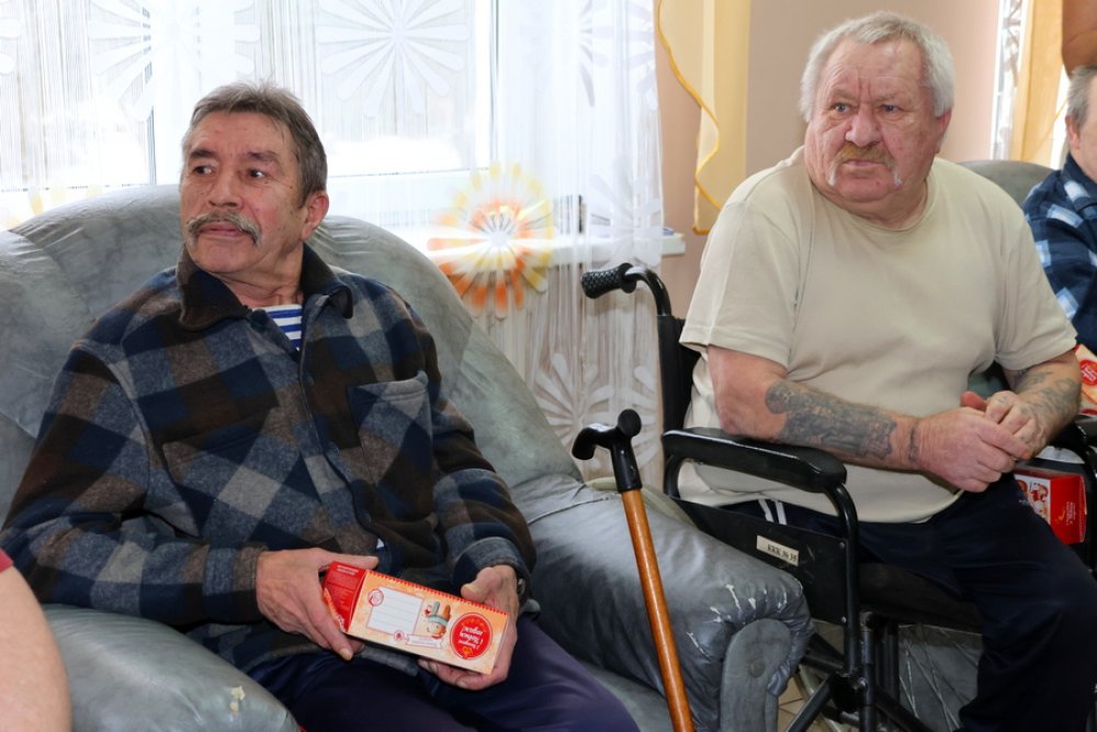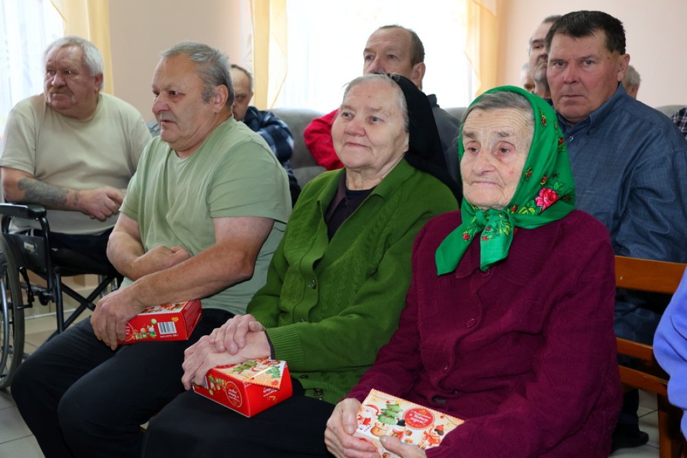 Поздравления с новогодними праздниками сегодня принимали в отделении круглосуточного пребывания граждан пожилого возраста и инвалидов и больнице сестринского ухода деревни Мадейки. Здесь развернулась благотворительная акция «От всей души».