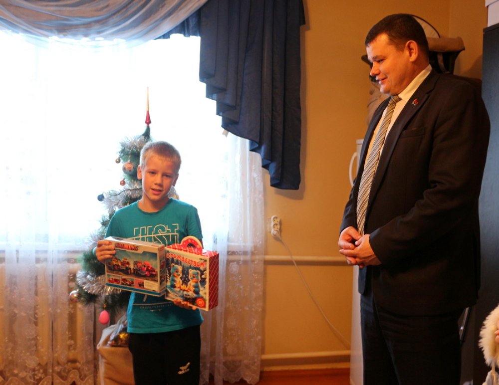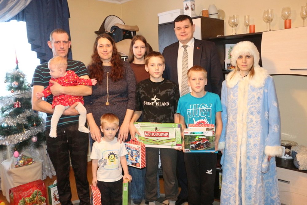Председатель Зельвенского районного Совета депутатов, лидер районного отделения Белорусской партии «Белая Русь» Вадим Панасик в рамках новогодней благотворительной акции «Наши дети» поздравил детишек из многодетной семьи Костиковых из аг. Деречин с наступающими новогодними праздниками и вручил ребятам сладкие угощения, развивающие игры и игрушки.