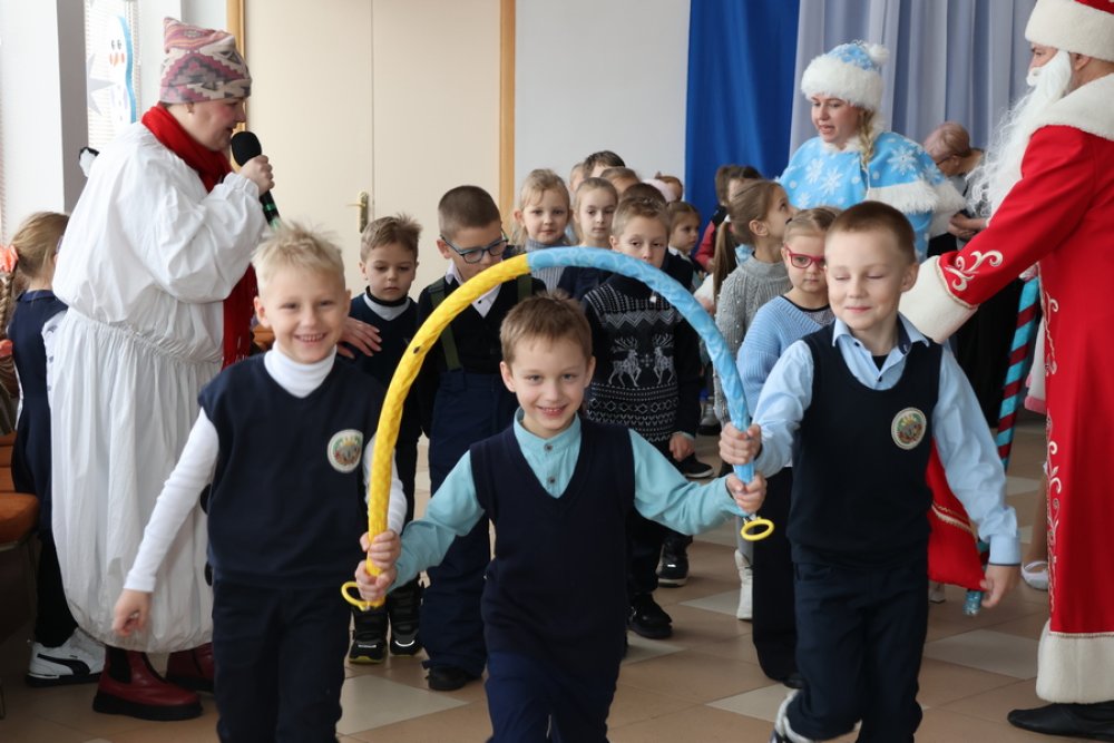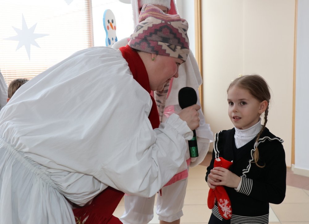 Зельвенские артисты во главе с Дедом Морозом и Снегурочкой с огромным удовольствием пригласили ребят поучаствовать в новогодних хороводах и играх, вовлекли в старую добрую сказку.