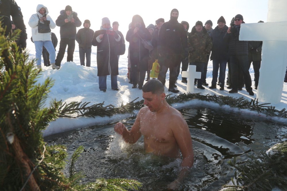 Здоровья и Божией опеки пожелали верующим и Михаил, и Геннадий, и батюшка Георгий, который пополнил ряды смельчаков.