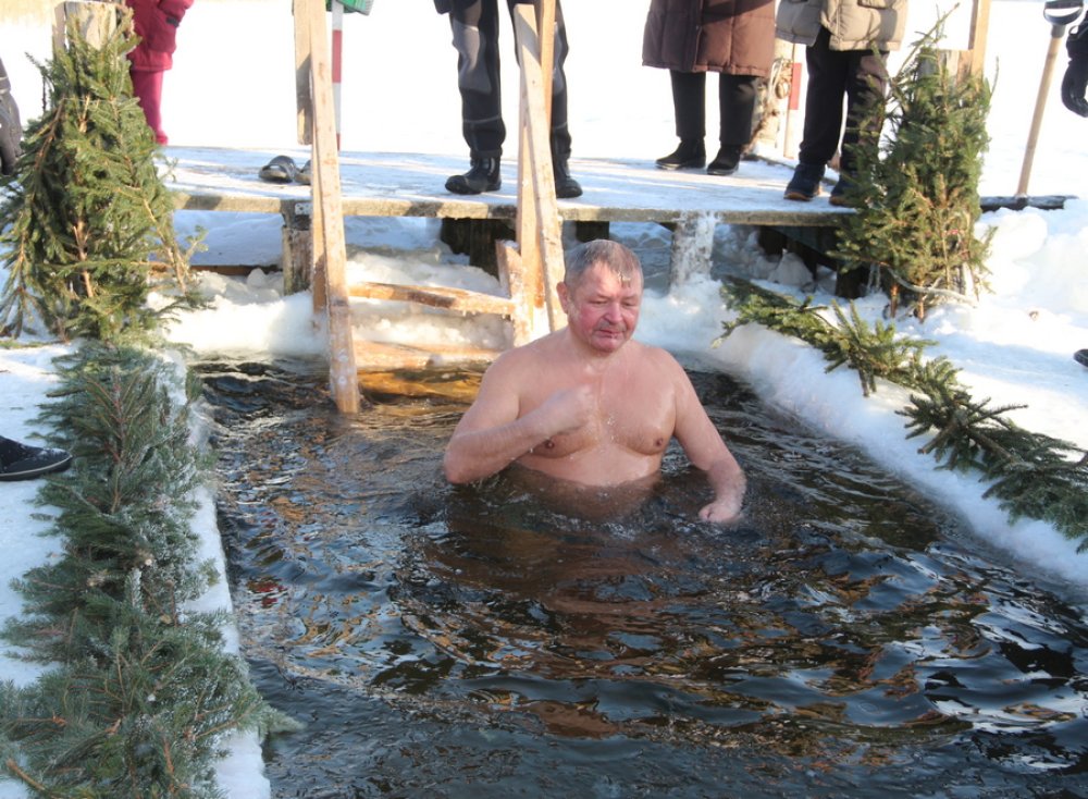 В этом году купальщиков было немного, но все с отличным настроением подходили к проруби. Среди зельвенцев самым старшим оказался 77-летний Иван Астапчик, который признался, что окунается больше 35 лет и другим желает ощутить благодать крещенской воды.