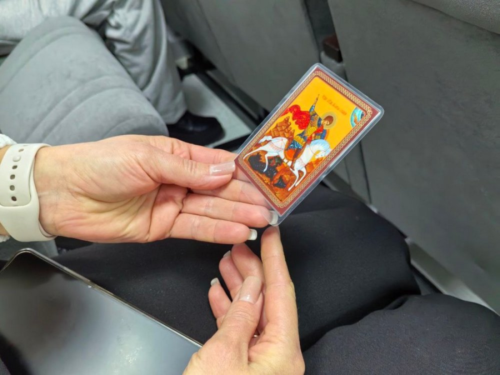 Отец Георгий вручил ребятам иконки с изображением покровителя всех военнослужащих – Георгия Победоносца.