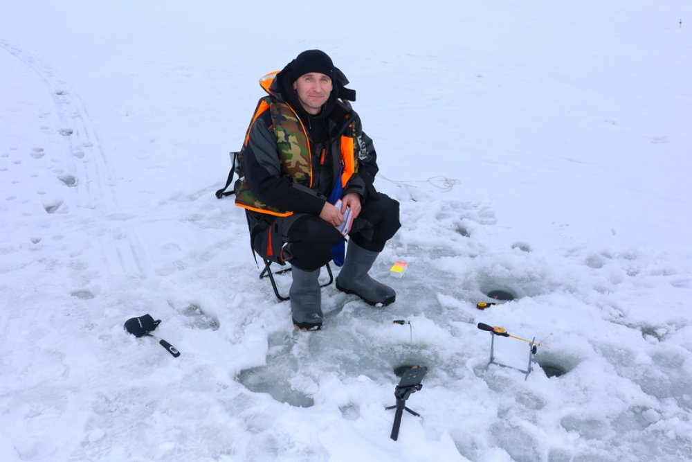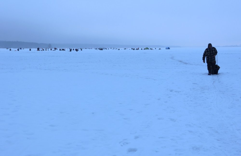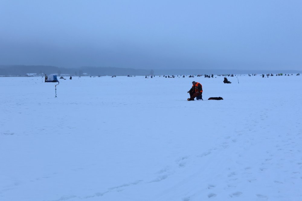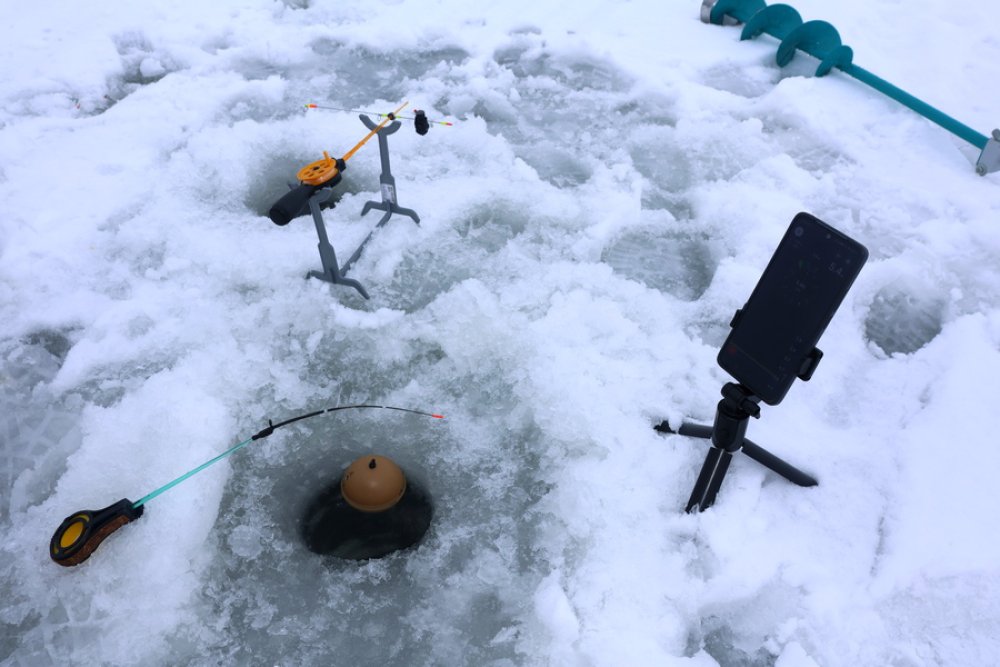 Пройдя дальше, мы заметили мужчину, внимательно смотрящего не на лунку, а на экран смартфона. Стало интересно: неужели даже здесь, на льду, не обойтись без гаджетов?