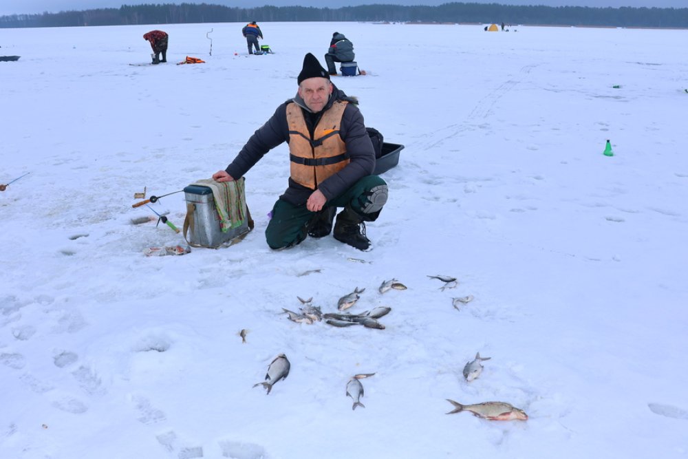 Пройдя еще немного, мы заметили мужчину, который виртуозно управлялся сразу с четырьмя удочками, расставленными у лунок. Возле него на снегу, будто на прилавке, аккуратно лежал улов – десяток, а то и больше блестящих плотвичек и подлещиков. Не отрывая взгляда от лунок, он кивнул в знак согласия на разговор.