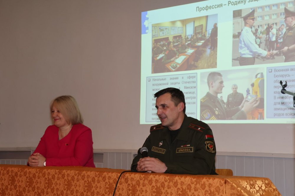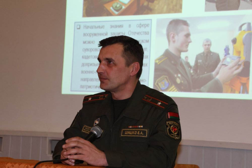 Евгений Шишко подробно рассказал ребятам о возможностях получения военного образования в Республике Беларусь, о престижных учебных заведениях, где готовят будущих офицеров, и о преференциях, которые даёт служба по контракту. Однако самая интересная часть началась, когда встреча перешла в формат открытого диалога. Школьников интересовал не только карьерный путь, но и личность человека в погонах.