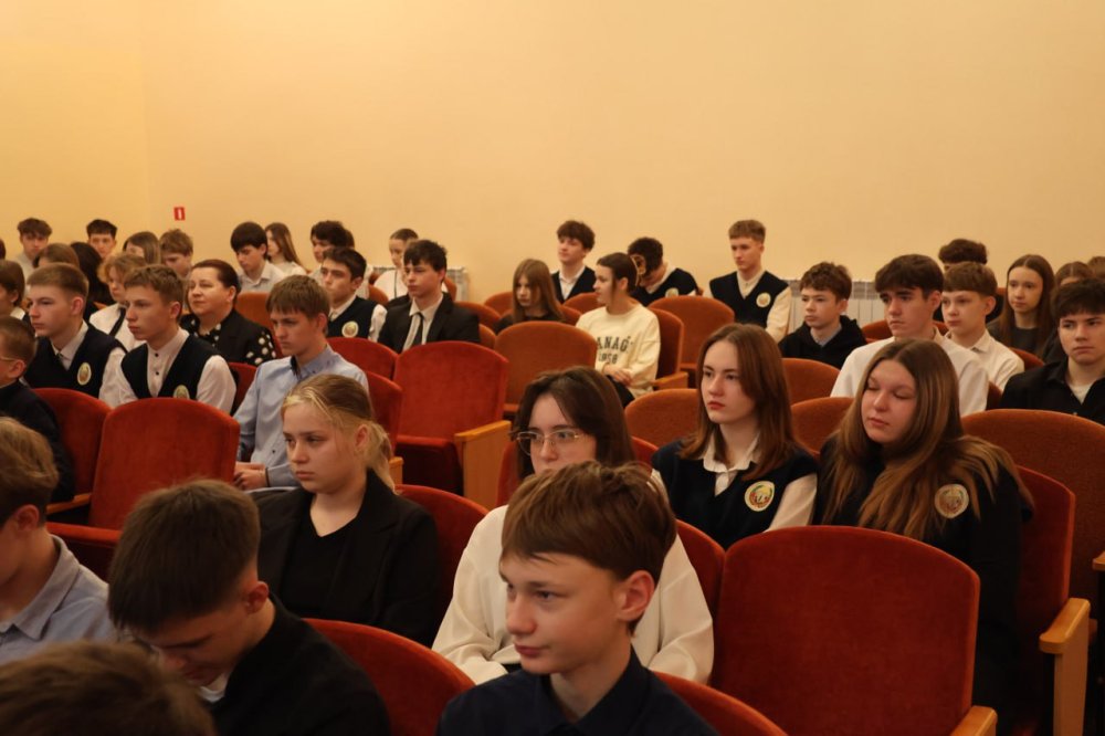 Встречу со школьниками начала директор учебного заведения Екатерина Игнатовец. В своей приветственной речи она подчеркнула важность темы разговора и обратила внимание молодёжи на профессию военного.