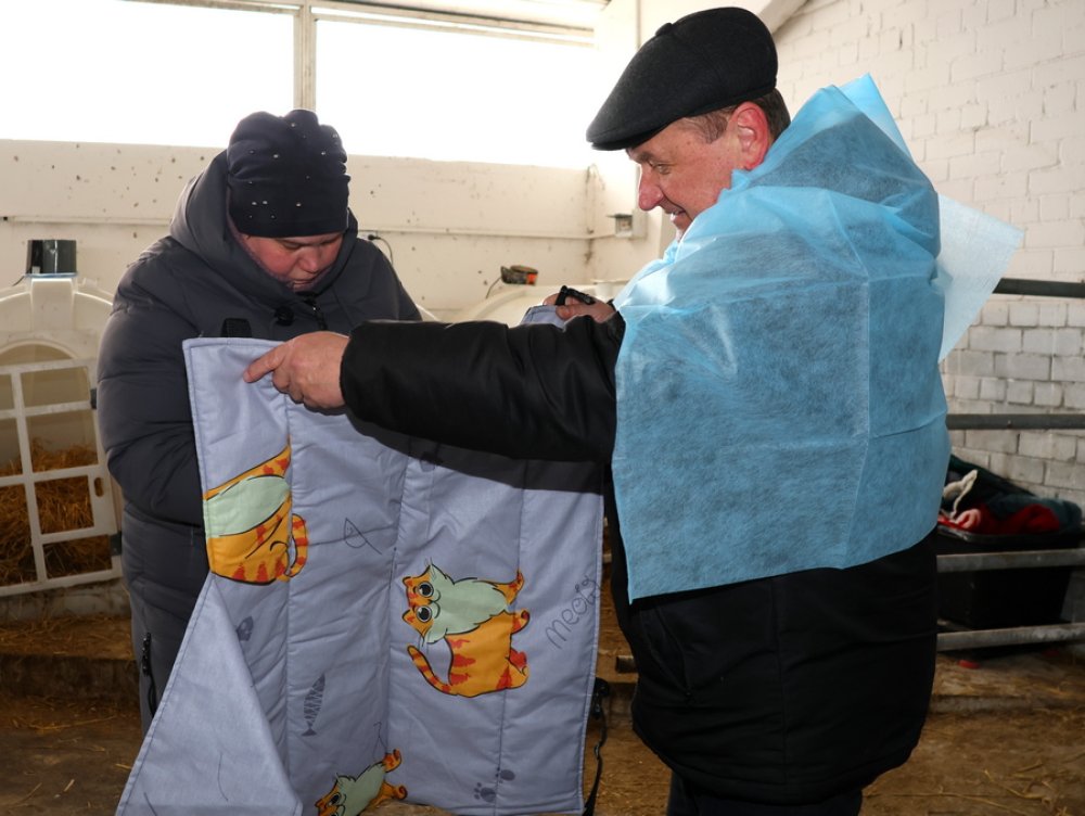 Председатель районного комитета профсоюза работников АПК Валерий Парфенчик и начальник управления сельского хозяйства и продовольствия райисполкома Сергей Сыско сегодня прибыли на молочнотоварный комплекс, где вручили животноводам «зимние одежки» для их подопечных.