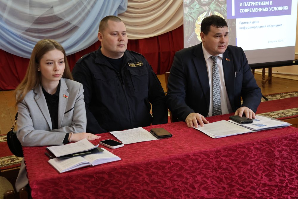 В рамках Единого дня информирования информационно-пропагандистская группа во главе с председателем Зельвенского районного Совета депутатов Вадимом Панасиком провела встречи с населением агрогородков Бородичи и Елка. Основная тема встречи: «Оборонительная мощь белорусской армии и патриотизм в современных условиях».