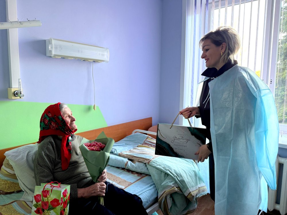 В свои 94 года Анна Захаровна Утлик сохраняет удивительную бодрость духа, истинную закалку победителя, но состояние здоровья все-таки порой подводит. Поэтому гостей почетная жительница Зельвенщины встречала не дома, а, к сожалению, в стенах больницы. Но несмотря на это, ее улыбка – символ великого подвига и бесценного мира, как всегда, одаривала своим теплом земляков.