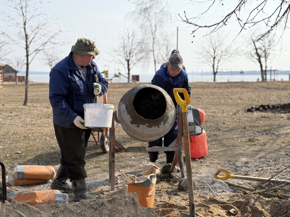 Работы по благоустройству территории ведутся работниками предприятия мелиоративных систем.