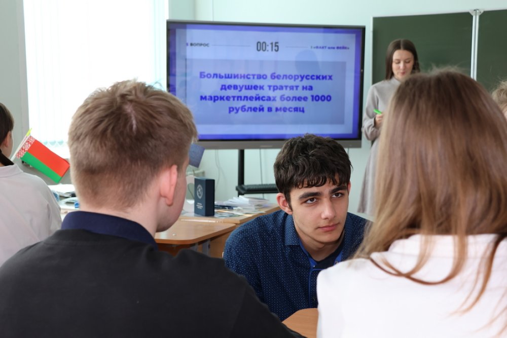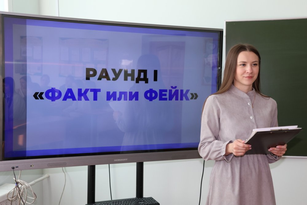 Первый этап «Факт либо Фейк» – участникам предлагалось определить правильность утверждений, касающихся статистических данных и исторических фактов. Рассматривались сведения о численности женского населения, представительстве женщин в Палате представителей Национального собрания, количестве улиц Минска с женскими именами, а также о знаменитых белорусках.