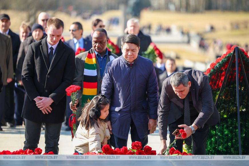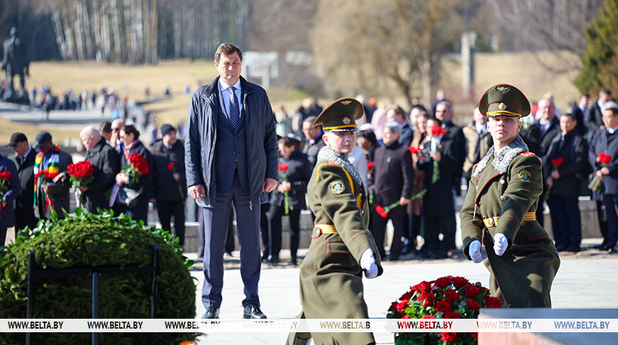 Руководство и сотрудники МИД совместно с представителями дипломатического корпуса, аккредитованного в Беларуси, возложили цветы к Вечному огню.