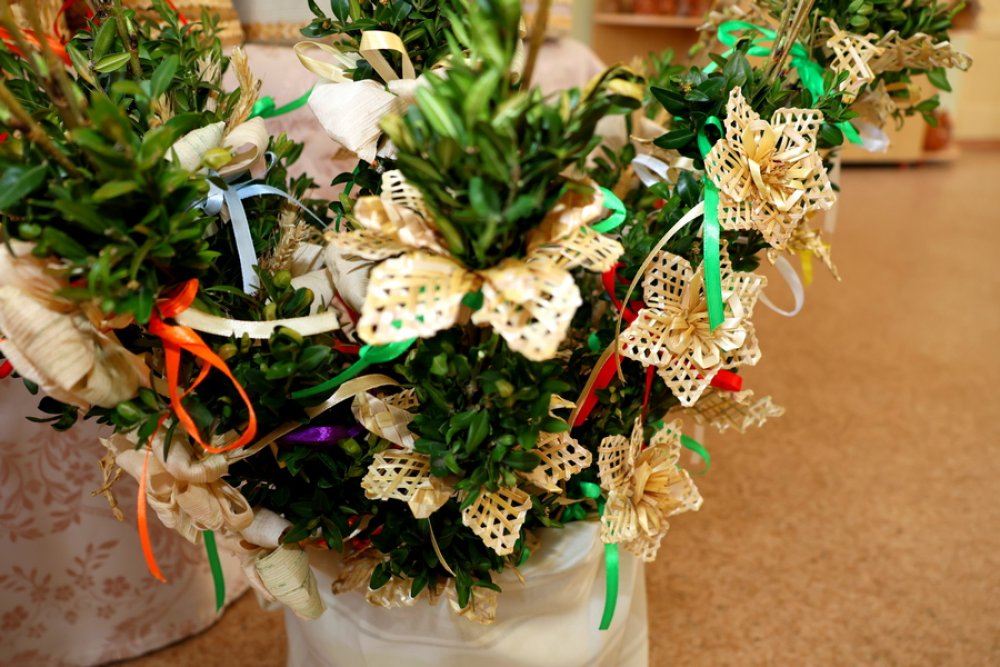 Разнообразие работ, выполненных в технике соломоплетения, впечатляет, а особое место всегда занимают пасхальные вербы.