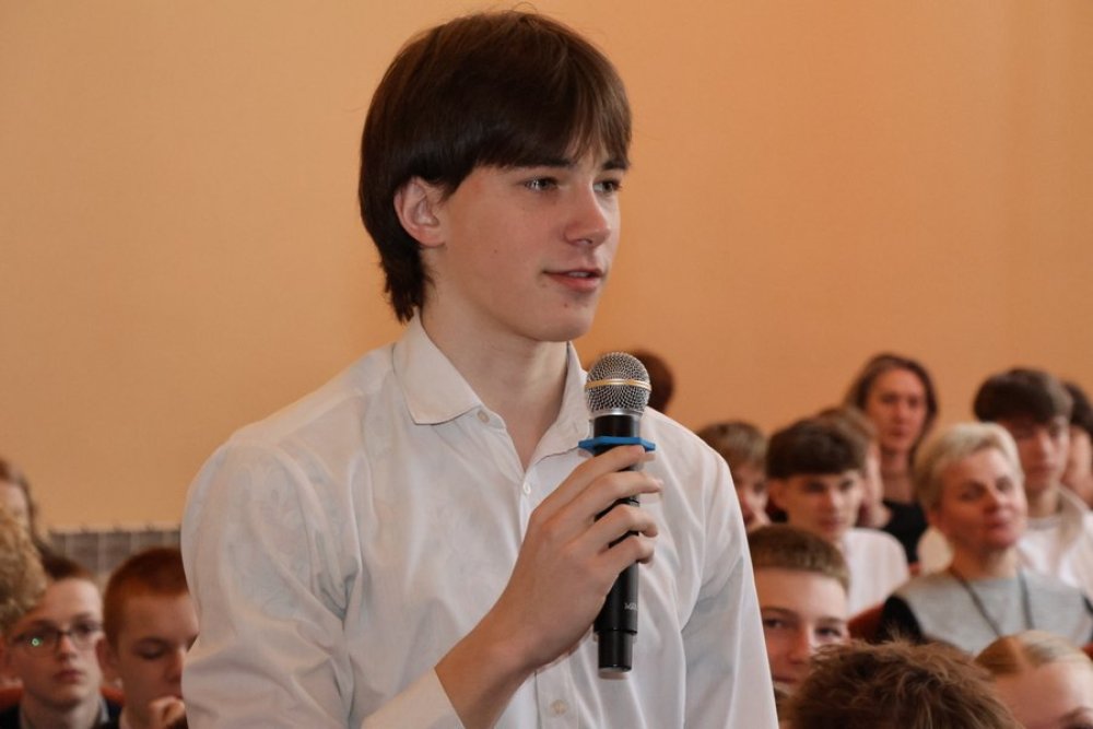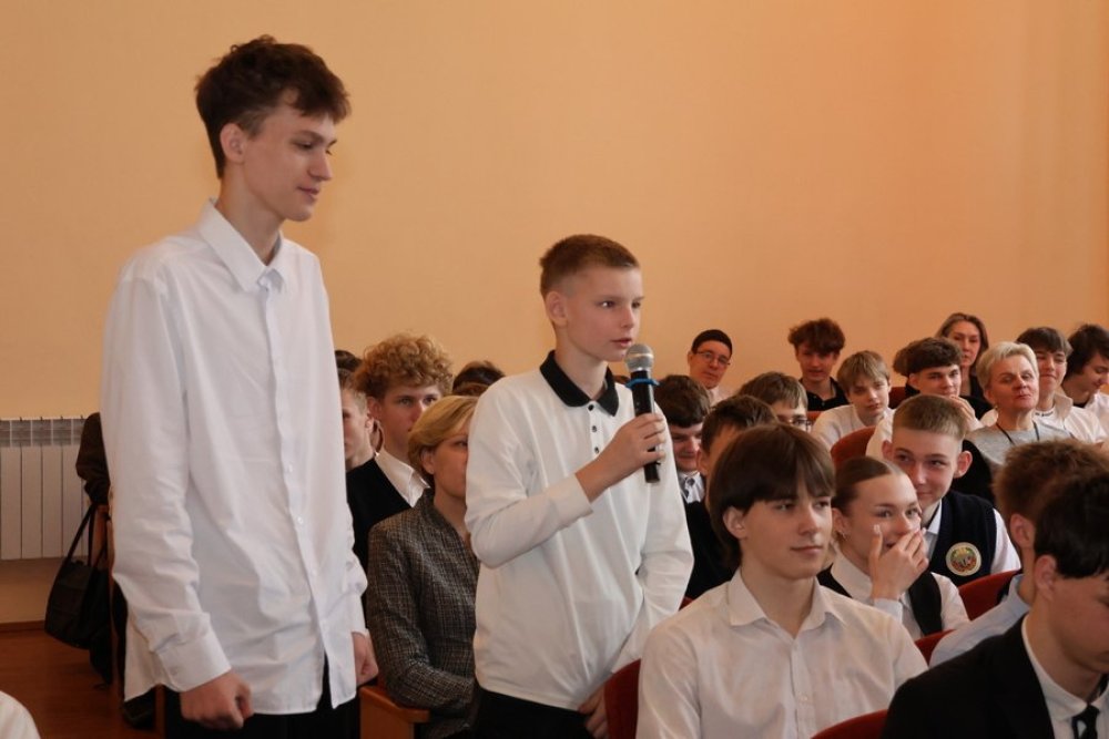 Так, Роман поинтересовался: насколько труден был путь к должности председателя райисполкома? Юрий Владимирович не стал рассказывать о карьерной лестнице и достижениях. Вместо этого он предложил ребятам подумать самим: любой профессиональный путь сложен, если идёшь по нему один. А затем поделился тем, что остаётся с ним с шестого класса: