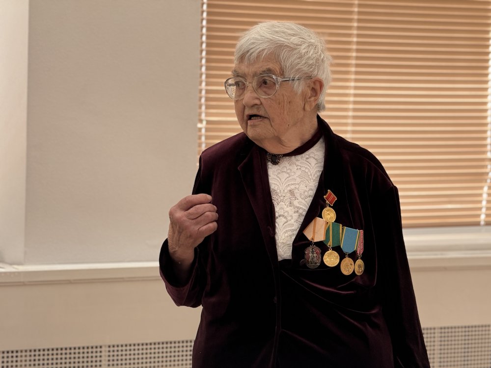 В завершение ветеран труда Ева Артурова прочла душетрепещущий стих о войне.