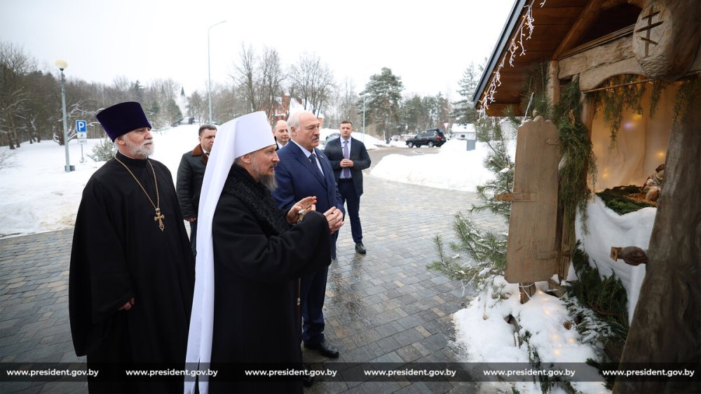 Президент Беларуси Александр Лукашенко в Рождество посетил храм в честь иконы Божией Матери "Млекопитательница" в деревне Околица Минского района.