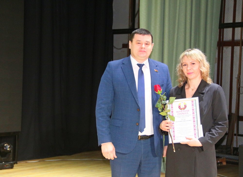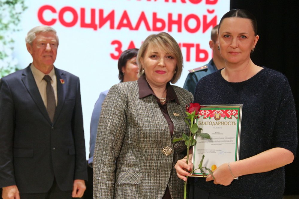 Церемония награждения дополняла приятные моменты праздника. На сцену поднимались те, кто трудится с большим энтузиазмом, высоким чувством ответственности, индивидуальным подходом к выполнению профессиональных обязанностей. Благодарности председателя комитета по труду, занятости и социальной защите Гродненского облисполкома удостоены Людмила Попко и Марина Стецко.