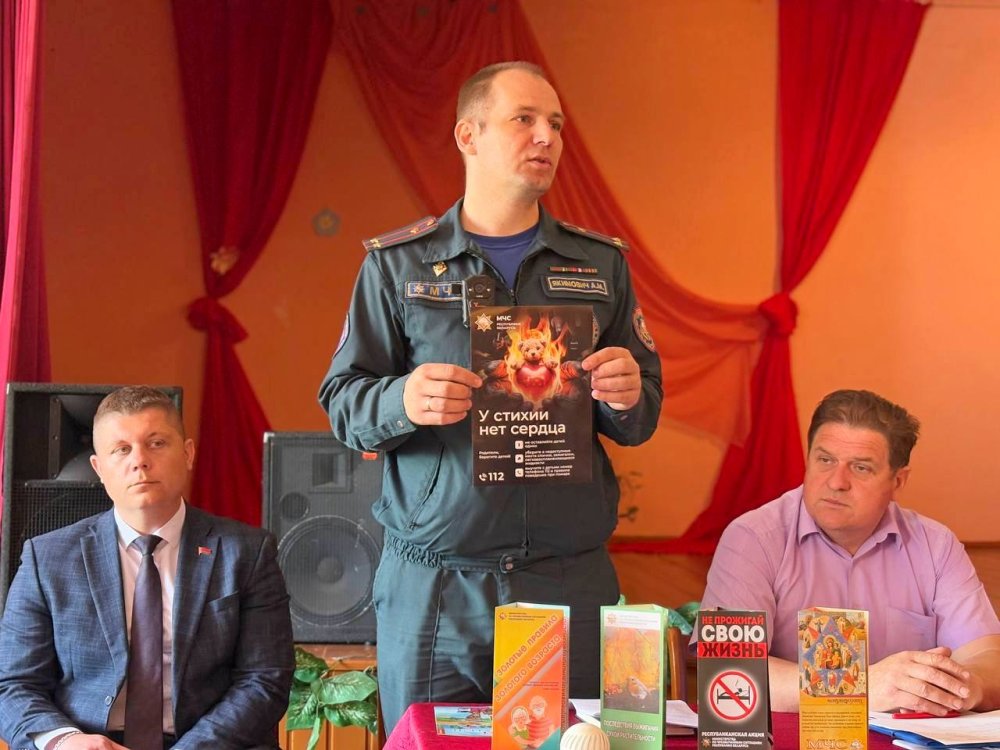Председатель Деречинского сельисполкома Александр Белекало озвучил актуальные проблемы по пожарам в сельсовете за 2024-й и истекший период 2025 года, а также призвал жителей к соблюдению правил, особенно в пожароопасный период.