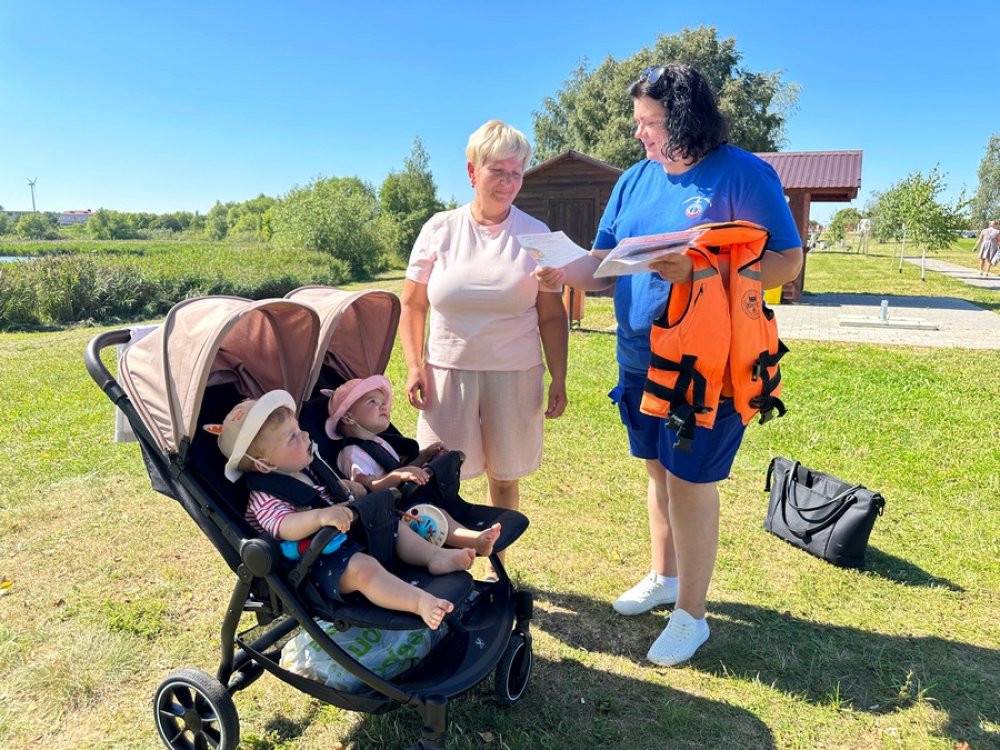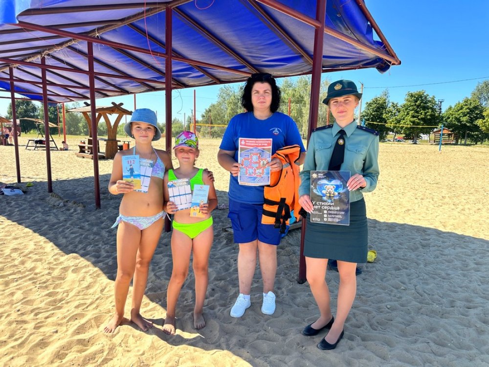 Обратили внимание на юных купальщиков и их родителей. Главный посыл – дети должны быть под постоянным присмотром взрослых. Екатерина Белько напомнила об опасности купания в нетрезвом виде и в необорудованных местах. Алкоголь притупляет реакцию, что при отсутствии знания глубины и особенностей водоема может привести к трагедии. Особое внимание было уделено использованию спасательных жилетов. Наталья Скобейко продемонстрировала, как правильно его надевать и подбирать по размеру.  В время рейда спасатели отвечали на вопросы отдыхающих, раздавали информационные буклеты с правилами поведения на воде.