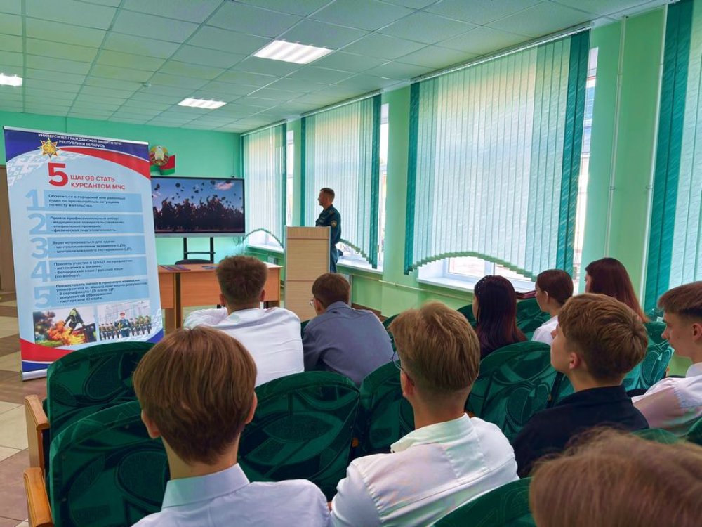 Начался новый учебный год, а это значит, что для старшеклассников наступает ответственный период выбора будущей профессии. Для того, чтобы  помочь ребятам в этом деле, учреждения образования поселка посетили сотрудники МЧС.