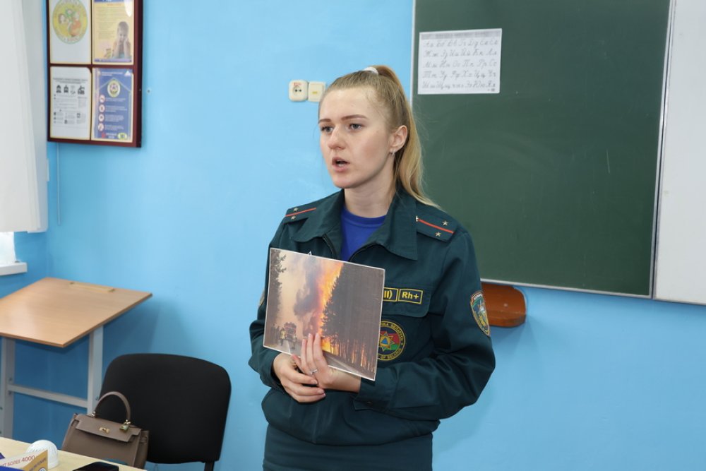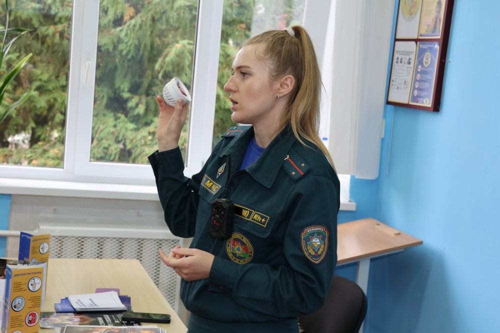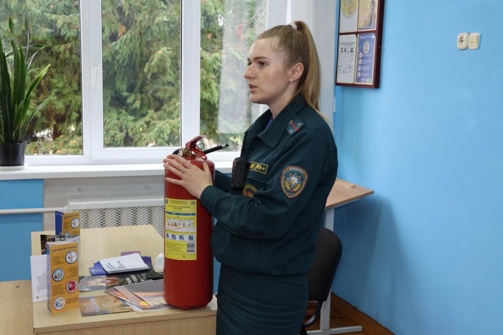 Для трудового коллектива школы инспектор сектора пропаганды и взаимодействия с общественностью Екатерина Белько провела познавательную беседу о правилах безопасного поведения в лесу, при курении, при подготовке к отопительному сезону и анонсировала проведение Единого дня безопасности, который будет проводиться 25 сентября. Также напомнила о детской шалости с огнем, важности автономных пожарных извещателей, провела мастер-класс по использованию огнетушителя, напомнила номера служб спасения и рассказала о частых причинах возгорания.