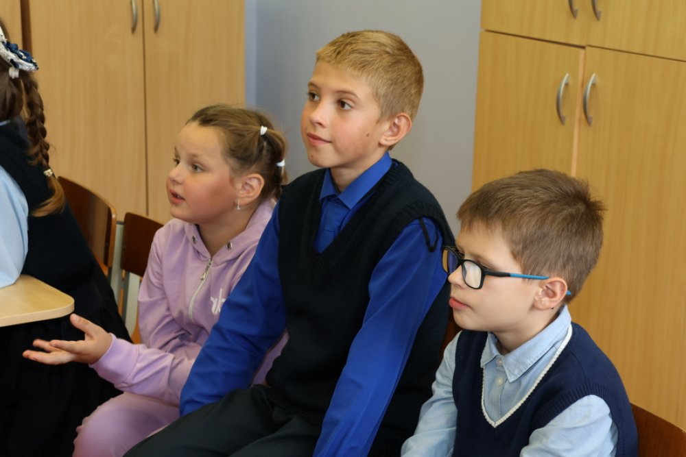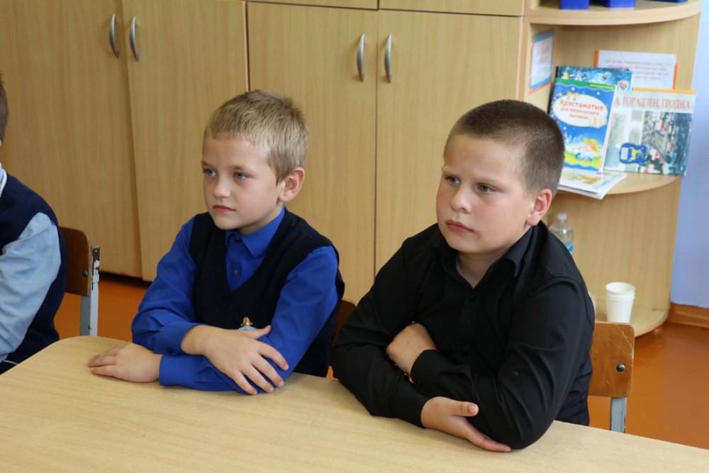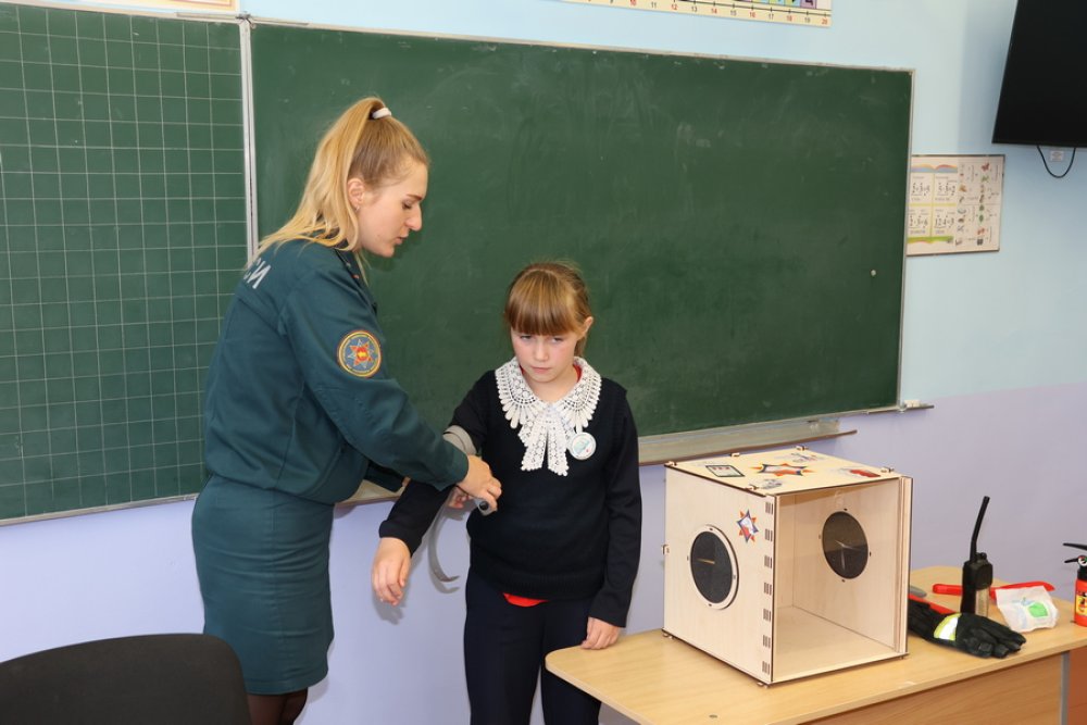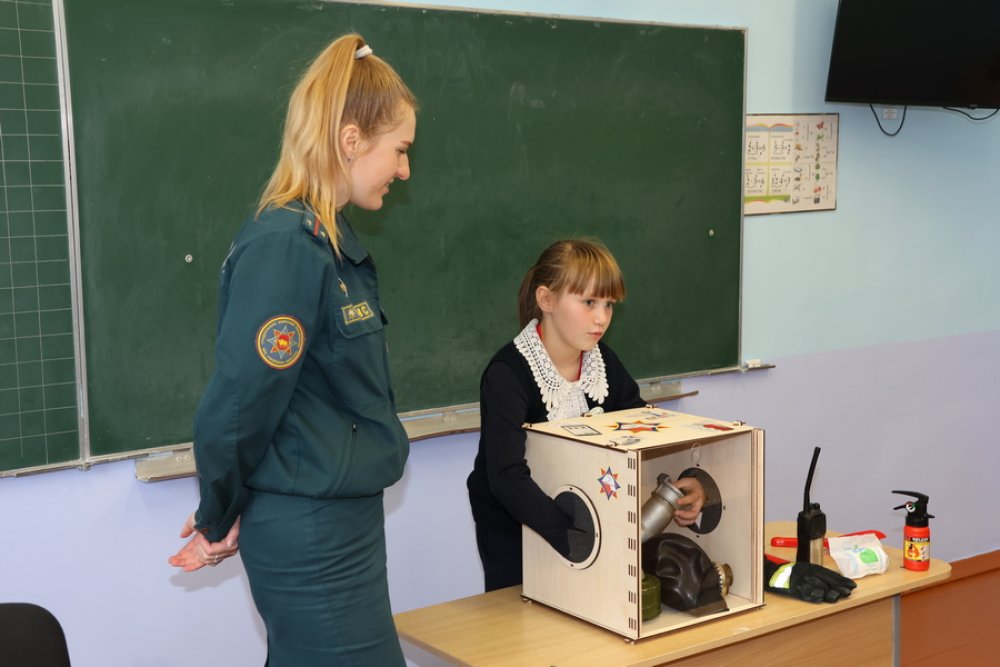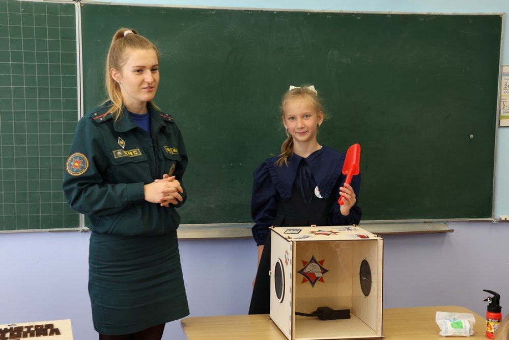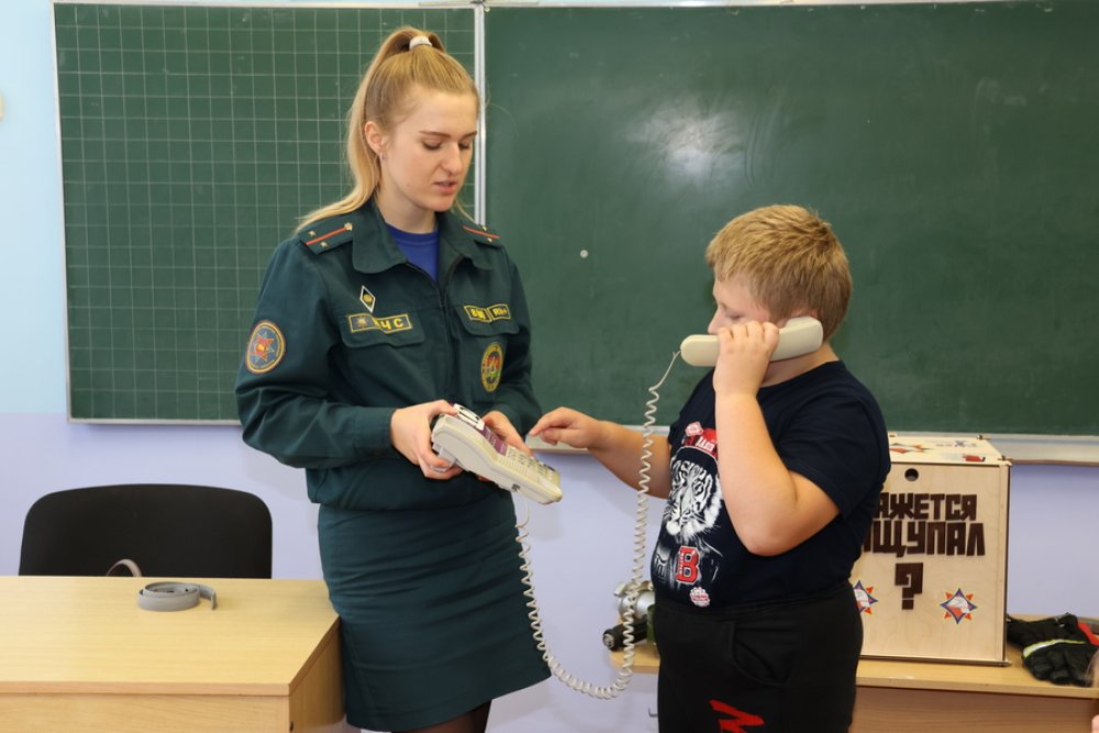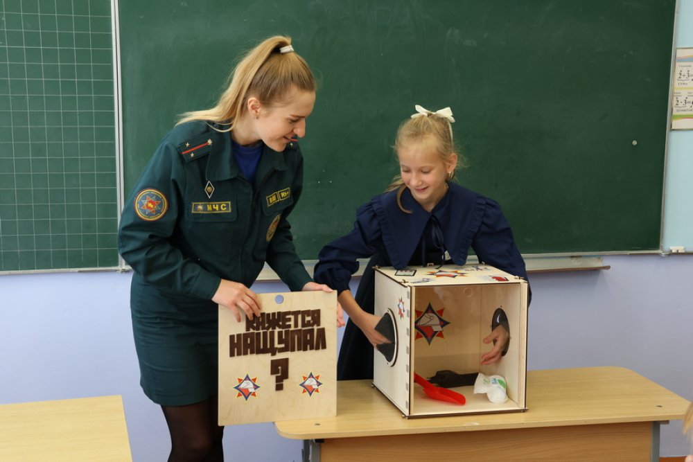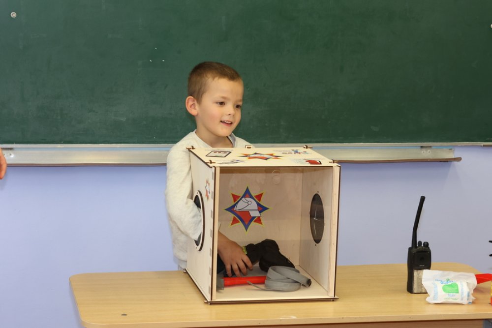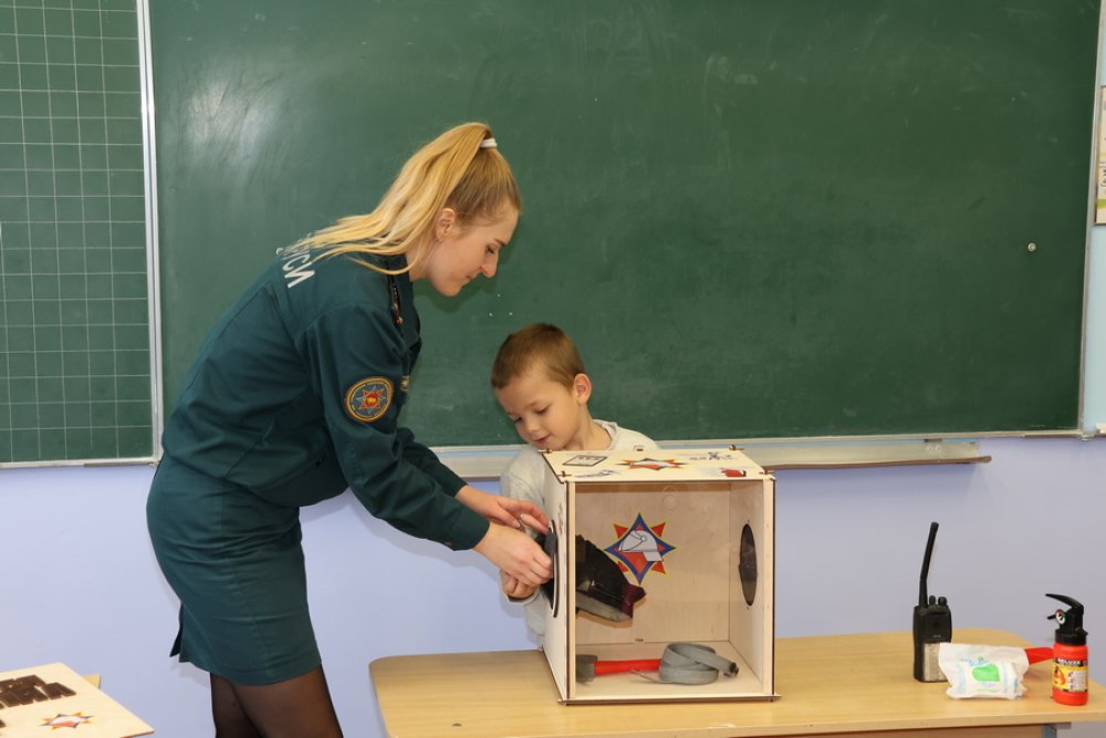 Для учеников 1-4 классов инспектор организовала обучающую интерактивную игру «Кажется, нащупал!». Дети должны были наощупь определить в «волшебной коробочке» предметы, которые используют спасатели в работе. Они с восторгом угадывали и все больше погружались в эту увлекательную, но и очень трудную профессию. Екатерина Викторовна вместе с ребятами обсудила, зачем нужны эти инструменты, как правильно пользоваться извещателем и для чего он нужен. Учащиеся также вспомнили номера служб спасения и с помощью карточек собрали цепочку – алгоритм действий в случае пожара.