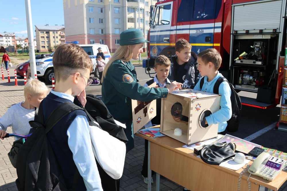 На интерактивных площадках службы демонстрировали специализированную технику, проводили беседы, игры и викторины. Одной из центральных локаций стала территория возле магазина «Евроопт».
