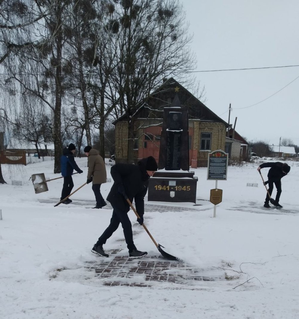 Сменив учебники и тетради на лопаты, ребята расчищают снег с дорожек, ступенек и площадок одиноко проживающих людей, а также возле памятников.