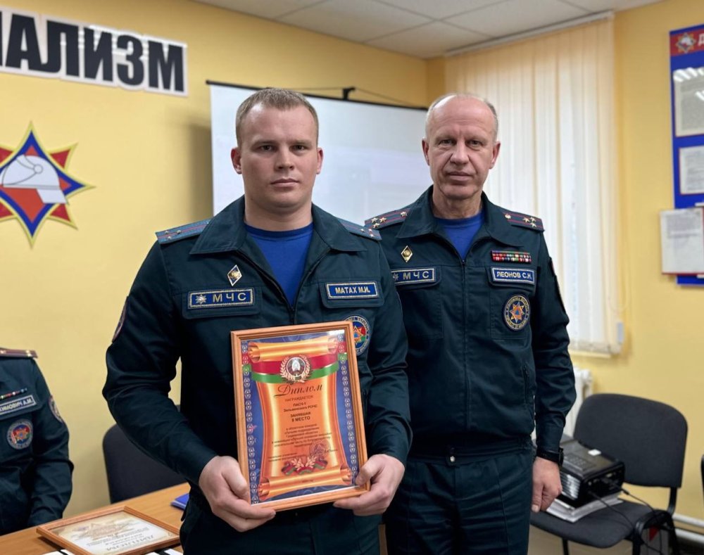 начальнику пожарной аварийно-спасательной части №1 Максиму Матаху диплом за II место в областном конкурсе «Лучшее подразделение Гродненской области» в номинации «Лучший пожарный аварийно-спасательный пост по благоустройству территории»,