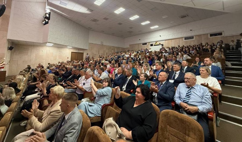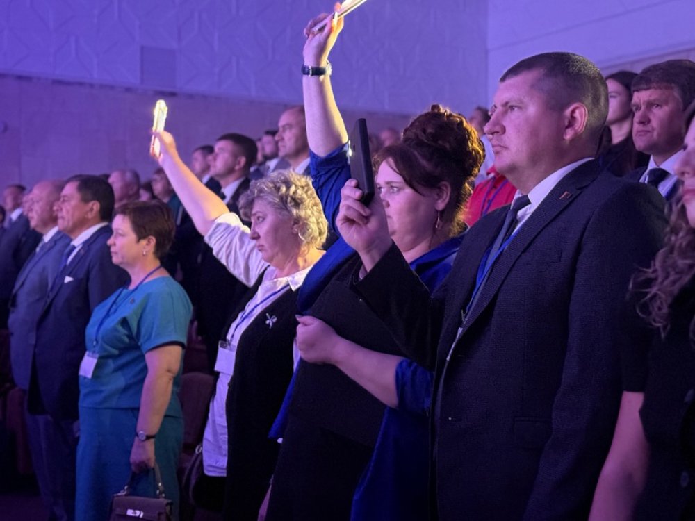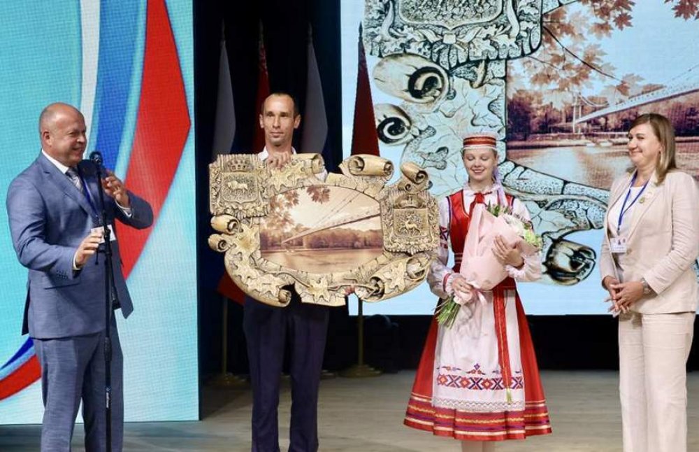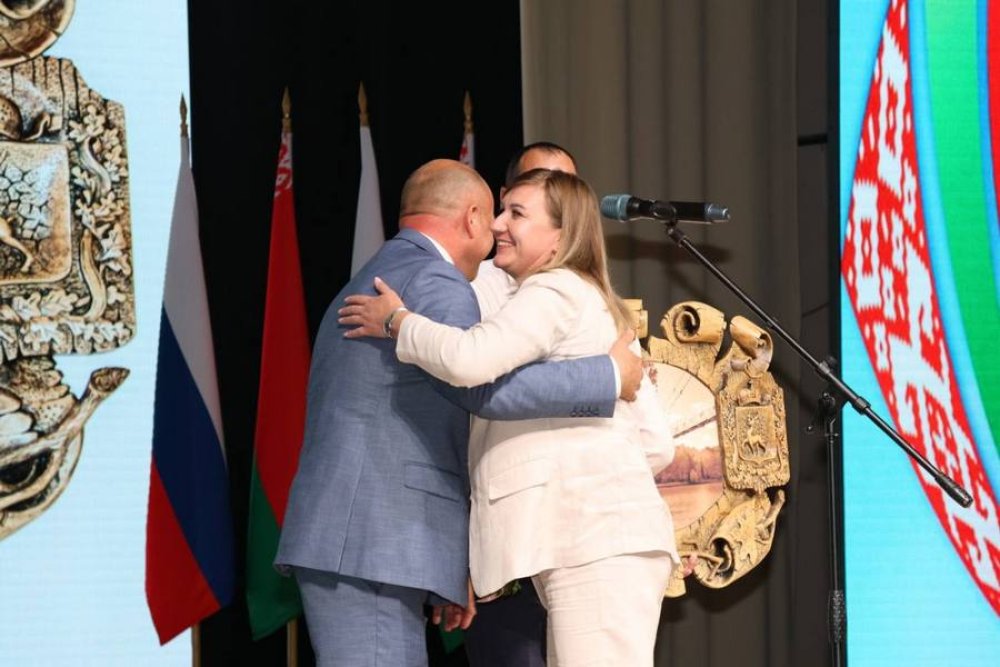 Под аплодисменты многочисленной аудитории председатель Мостовского райисполкома Андрей Санько передал символ форума представителю Большеболдинского муниципального округа.