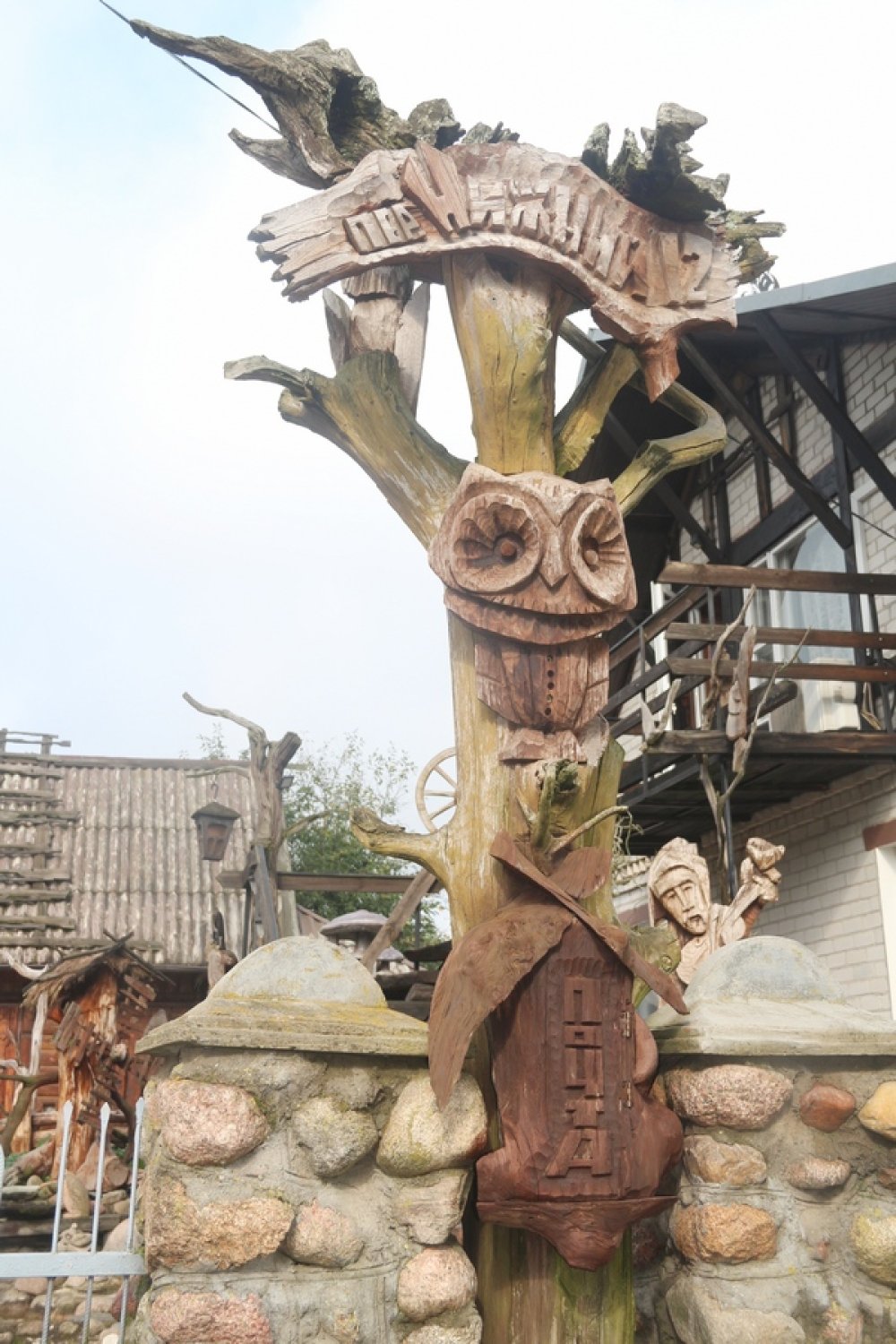 Благодаря экологическому хобби (изготовлению скульптур из коряг и веток деревьев), хозяева сказочно украсили двор и дом.