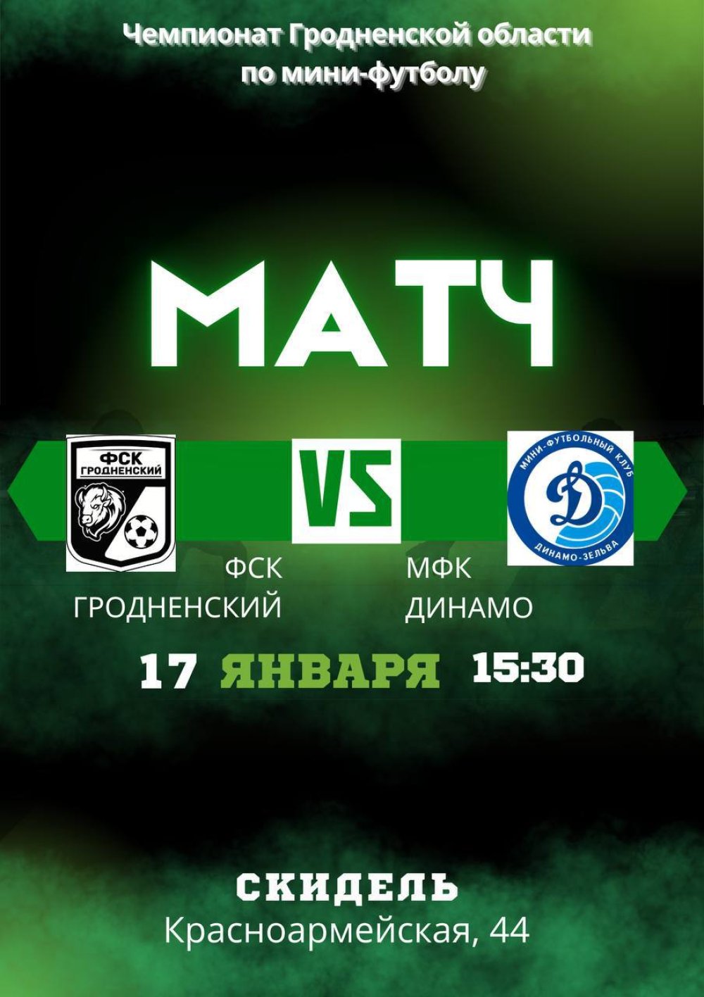 17 января в Скиделе состоится игра между ФСК "Гродненский" и МФК "Динамо-Зельва"