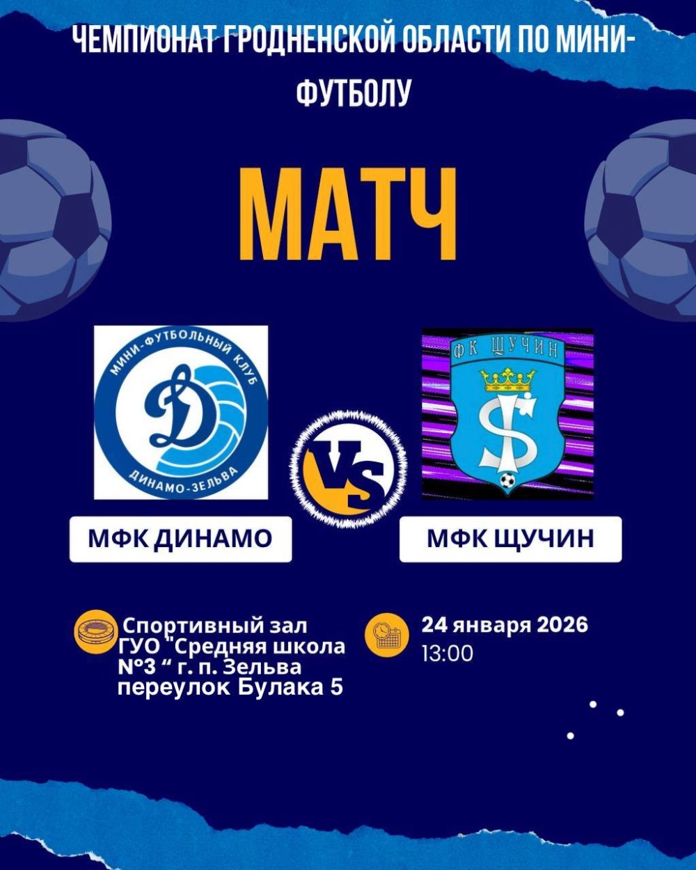 В субботу, 24 января, приглашаем на матч по мини-футболу между Зельвой и Щучином